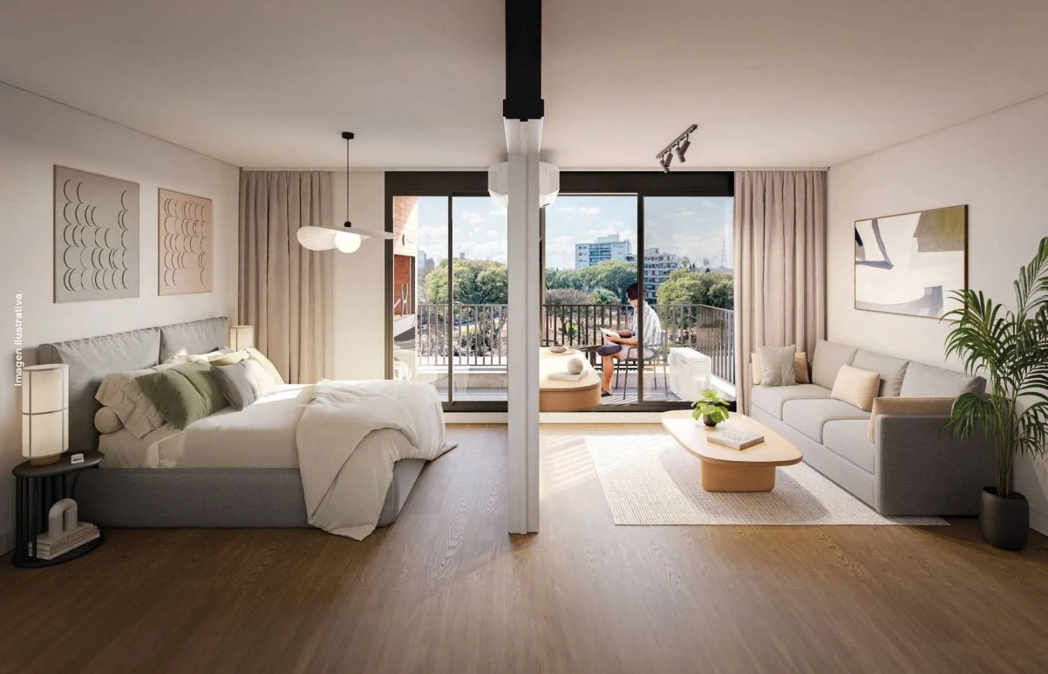 Dormitorio al frente con salida a terraza. Pisos vinilicos simil madera