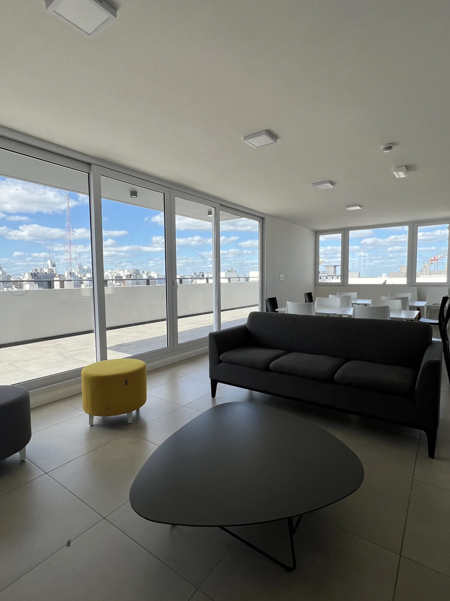 En piso 11: Amplia terraza exterior, SUM equipado y Parrillero