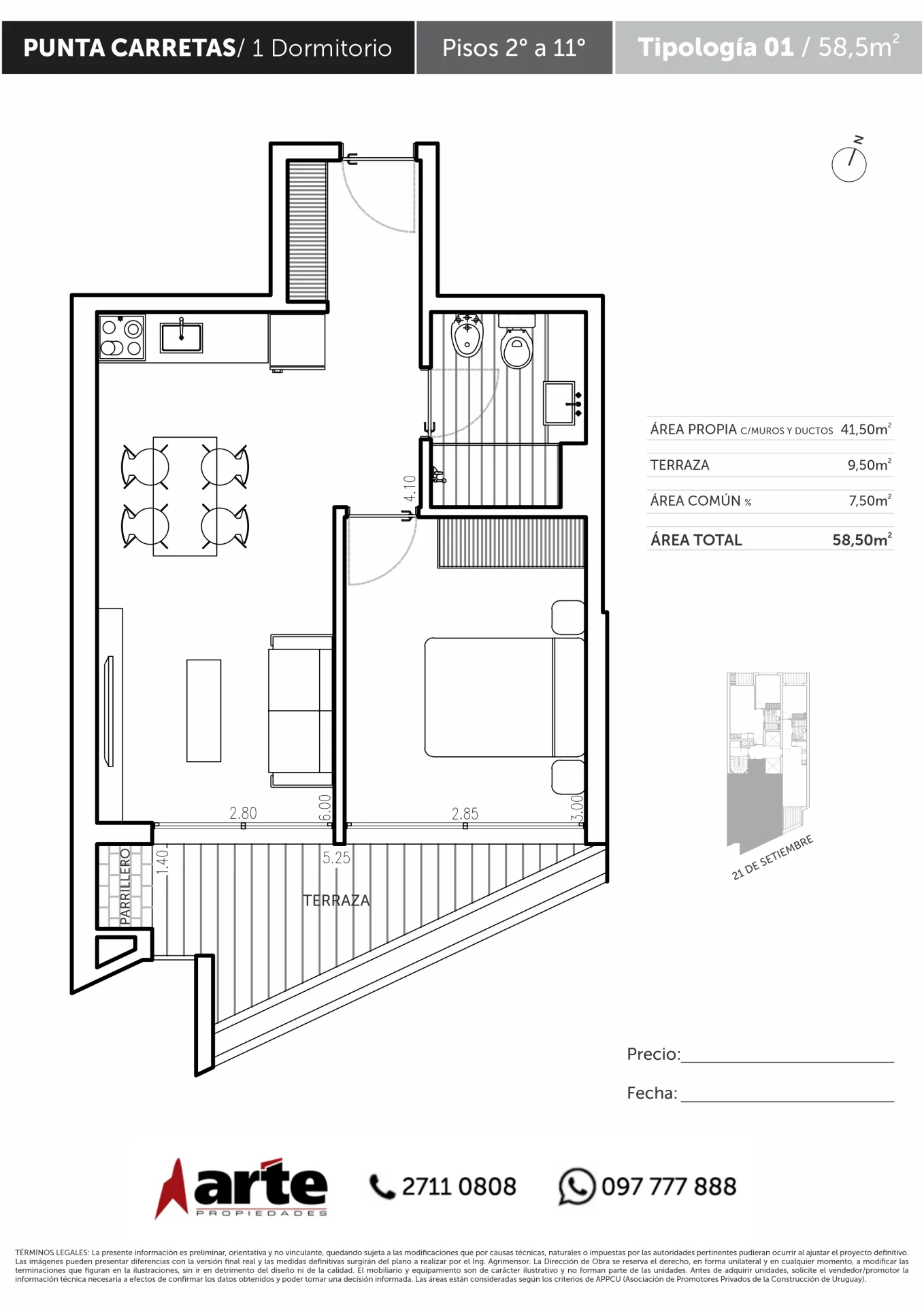 R$ ~927,000 / + $ 1 gastos comuns / U$S 2,983/m2