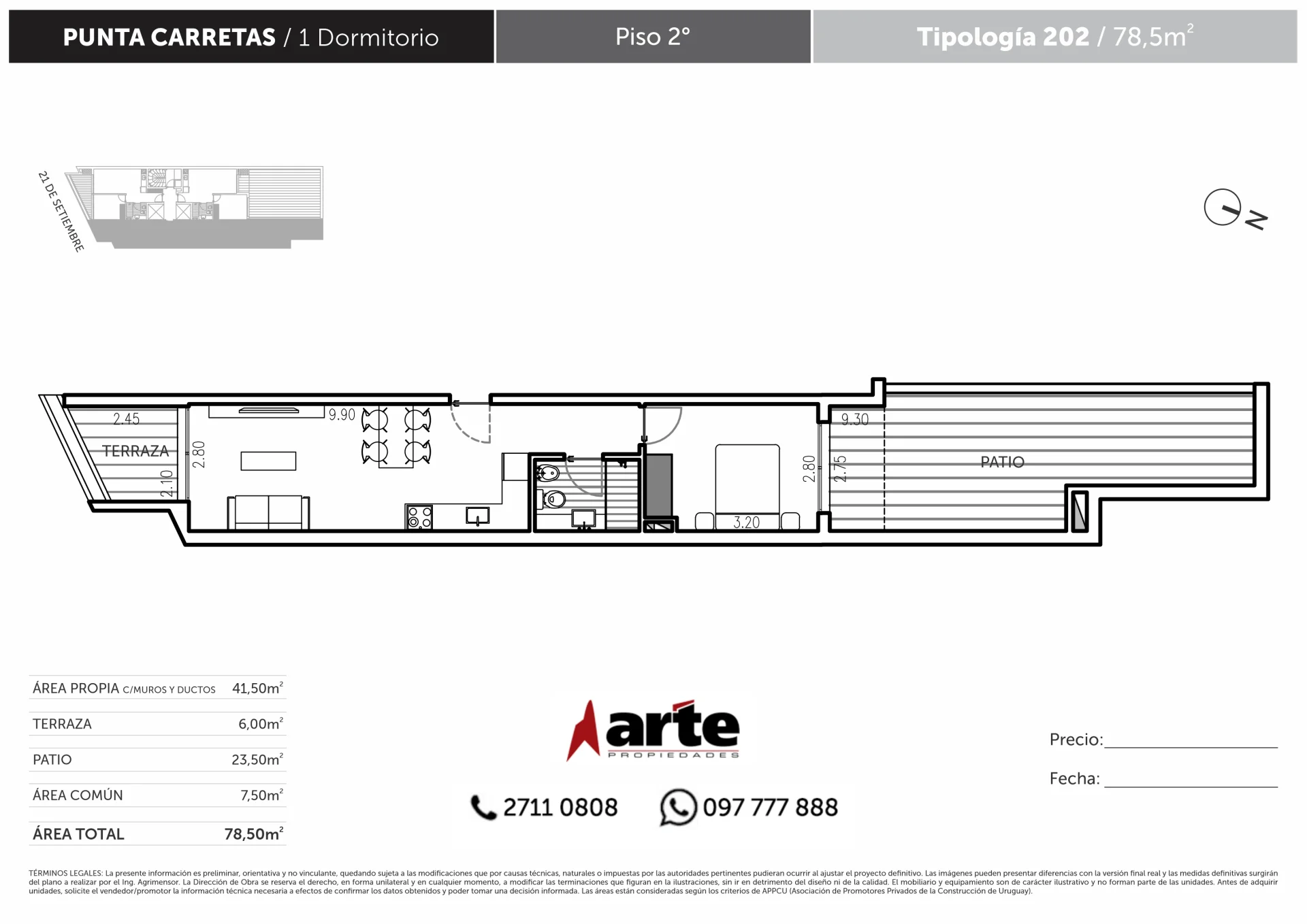 R$ ~1,050,000 / + U$S 1 gastos comuns / U$S 2,500/m2