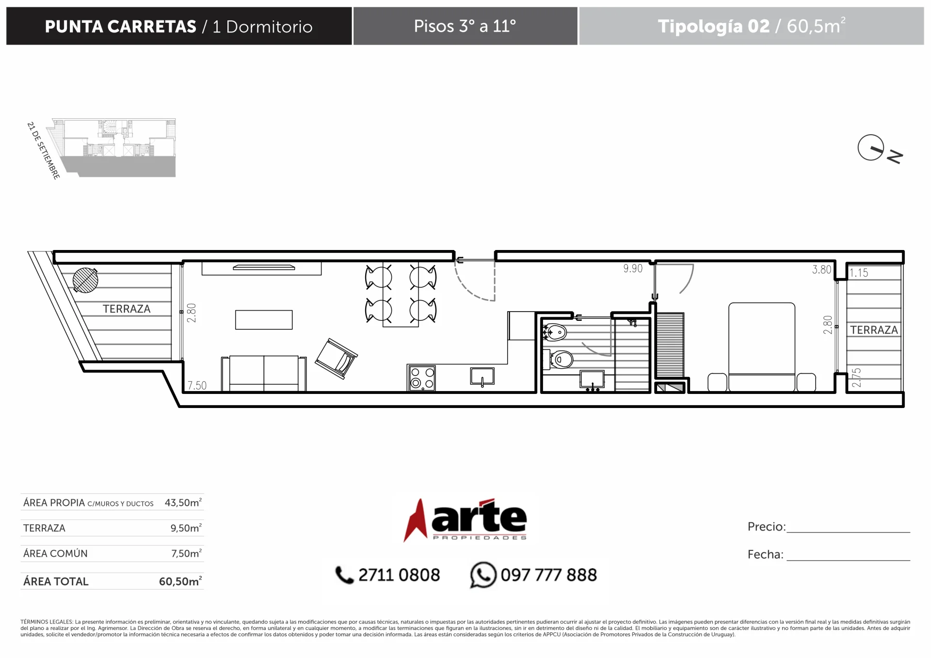 R$ ~1,050,000 / + U$S 1 gastos comuns / U$S 3,250/m2