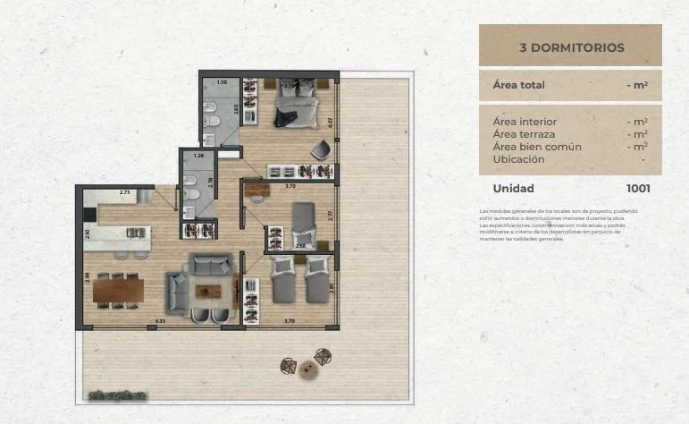 Los dormitorios ofrecen una amplitud y confort, con placares empotrados y terminaciones de alta calidad. El baño presenta un diseño moderno con revestimientos de primera línea. Además, la unidad cuenta con preinstalación para aire acondicionado y acceso a las comodidades que ofrece el edificio: rooftop con parrilleros y solárium, laundry, bicicletero y seguridad 24 horas.