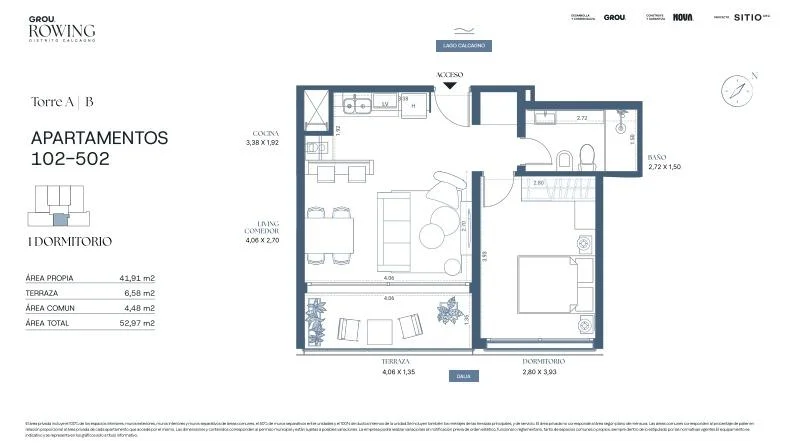 El apartamento integra las comodidades del edificio Grou Rowing, que ofrece amenities actuales, zonas de recreación y ambientes pensados para un estilo de vida dinámico y conectado.