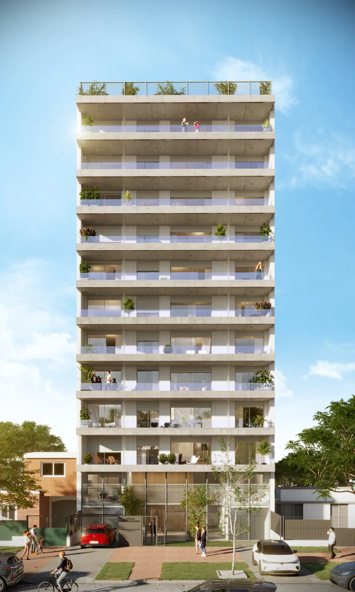 El edificio contará con terrazas de uso común, zona de parrilleros y 24 cocheras proyectadas entre planta baja y subsuelo.
