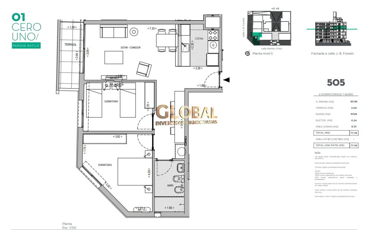 Con 77 m² totales, esta unidad ofrece:
