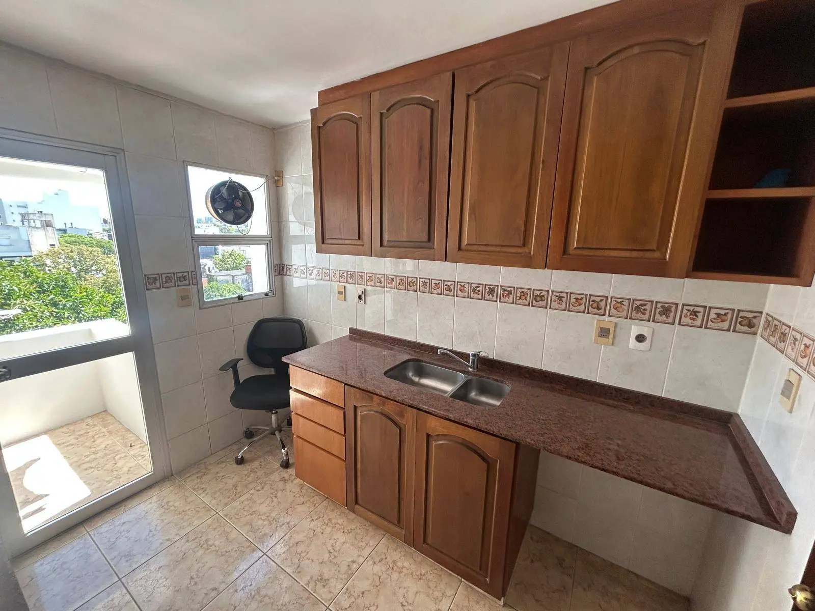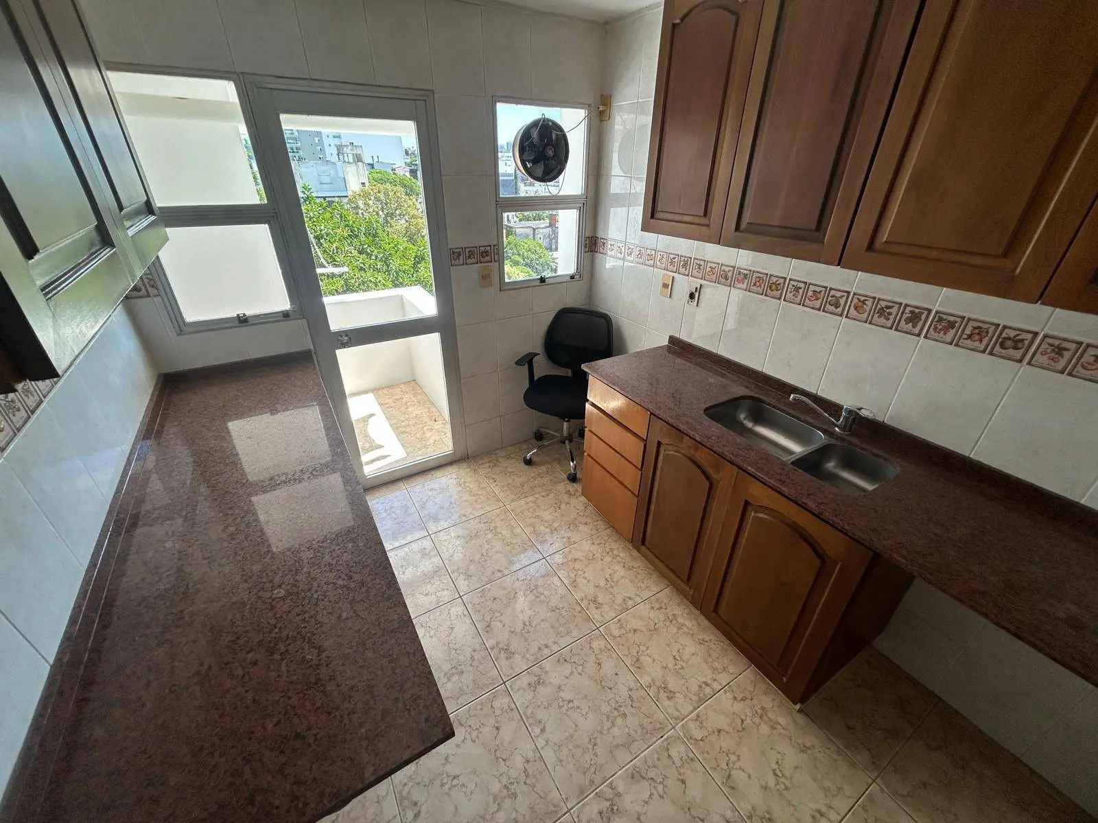 Cocina con placares, prevision para lavavajillas, con terraza lavadero de 3 m2, instalacion para lava y secarropas, muy luminosa.