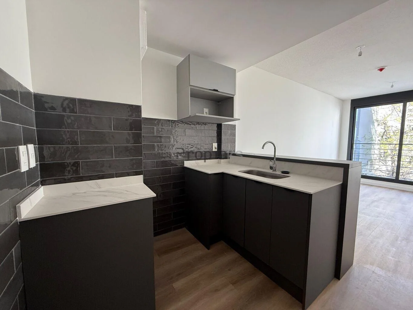 Apartamento a estrenar de 1 dormitorio y 1 baño con cocina integrada, diseñado con un estilo moderno y funcional.