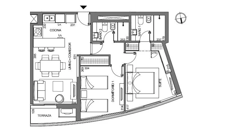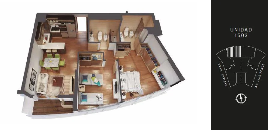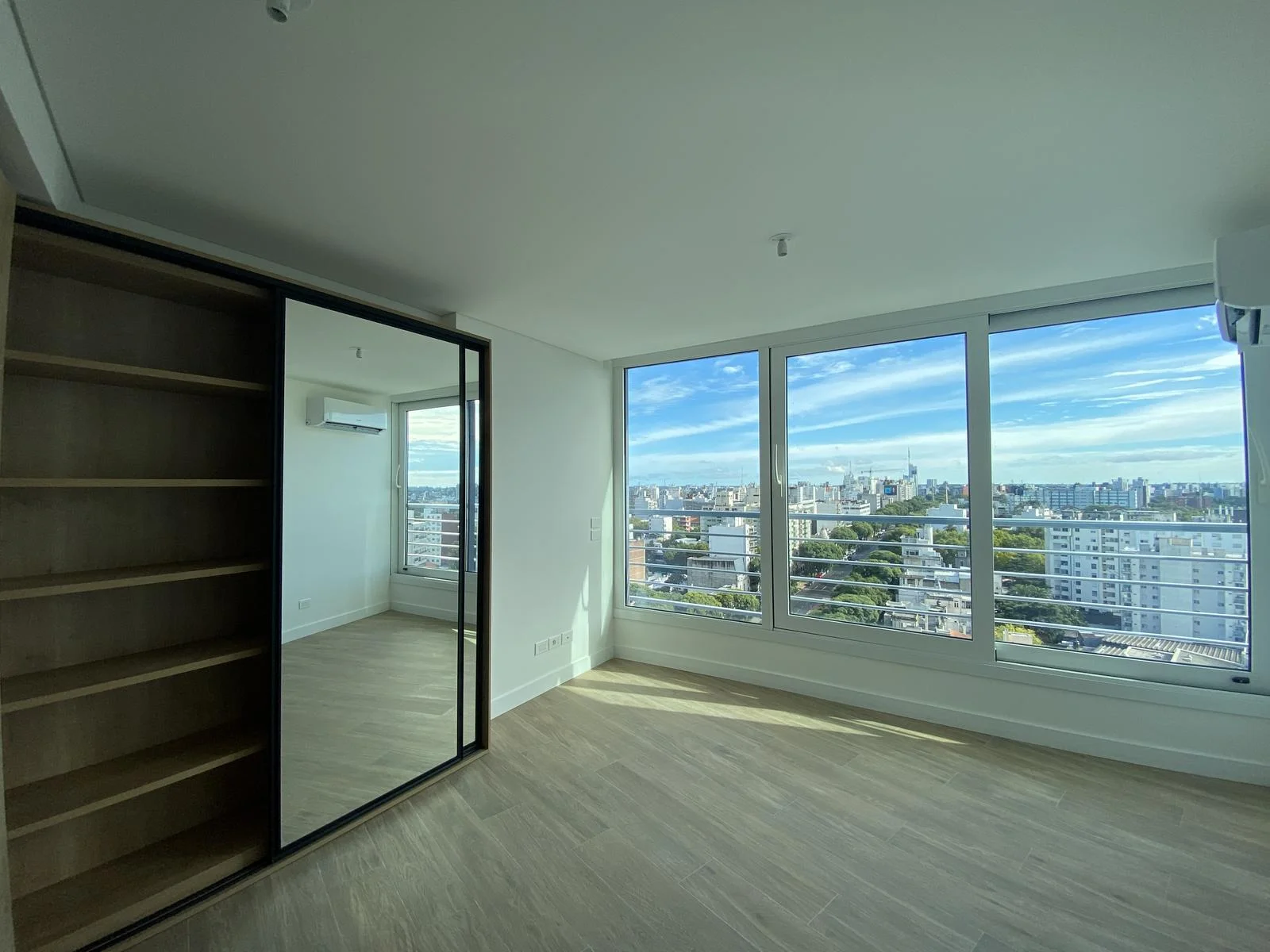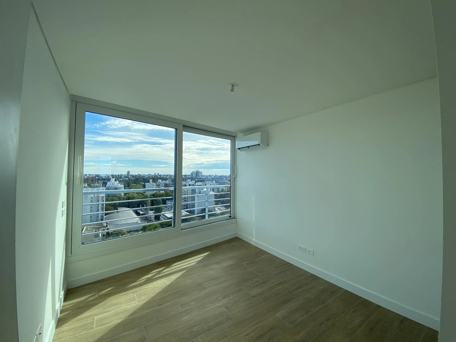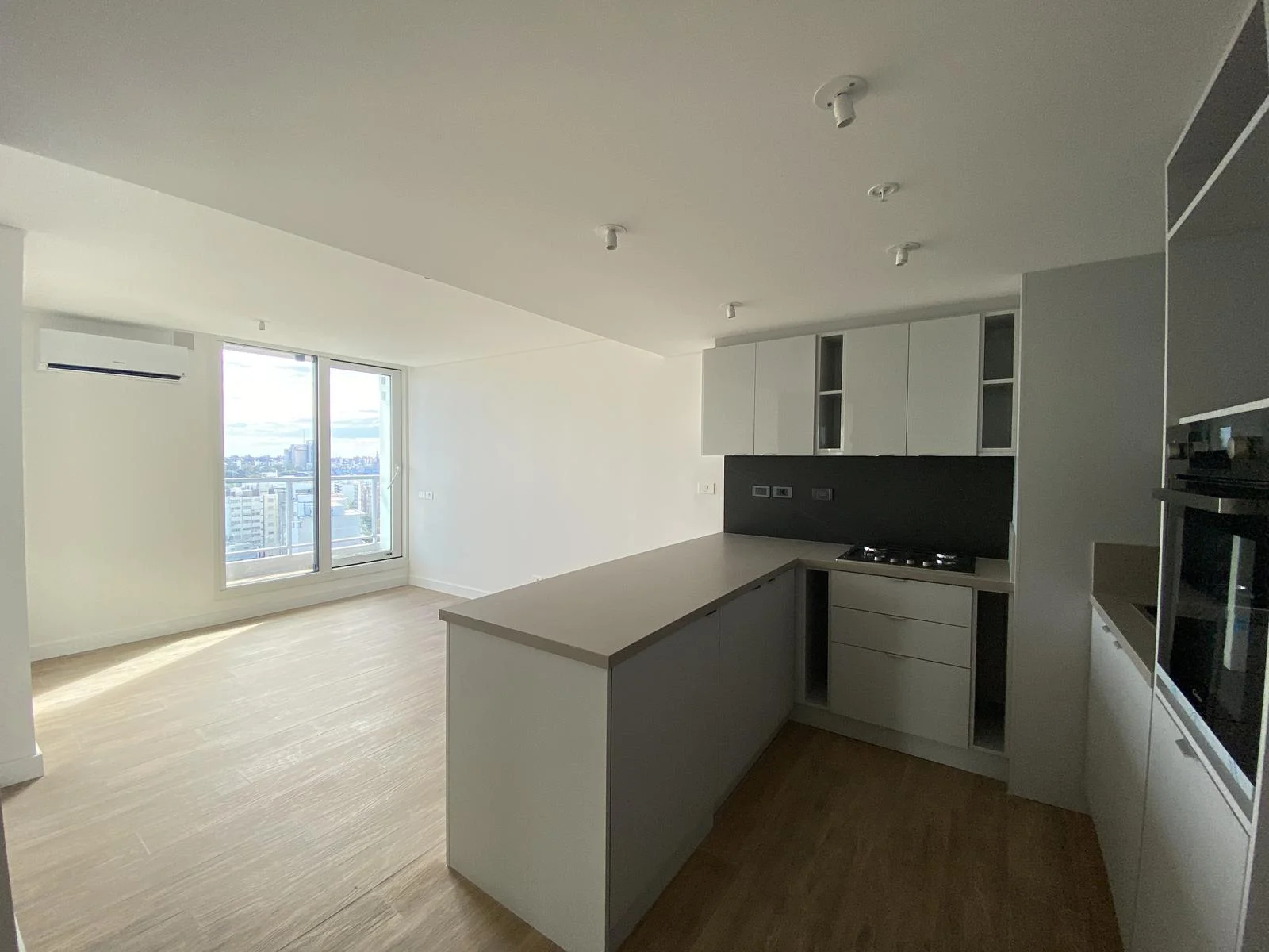 Apartamento premium de 2 dormitorios en el piso 19 (lateral), equipado con horno, anafe y campana de extracción, muebles bajo y sobre mesada. Pisos de porcelanato simil madera. Losa radiante por caldereta a gas sectorizada individual.