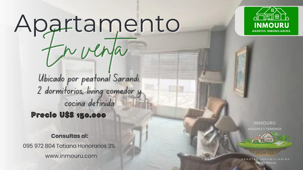 Venta de Apartamento en Ciudad Vieja Precio U$S 150.000 Cuenta con dos dormitorios con placares empotrados, baño, living comedor, cocina definida, acceso a la azotea. Ubicado por Peatonal Sarandí, en un punto estratégico de la ciudad. Es un segundo piso por escalera y balcon con vista a la peatonal. Honorarios 3% Agente Tatiana Referencia Interna : Tera-1981