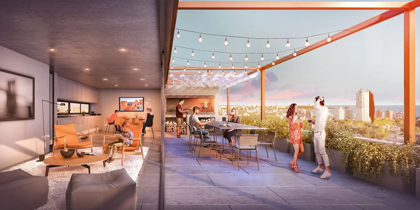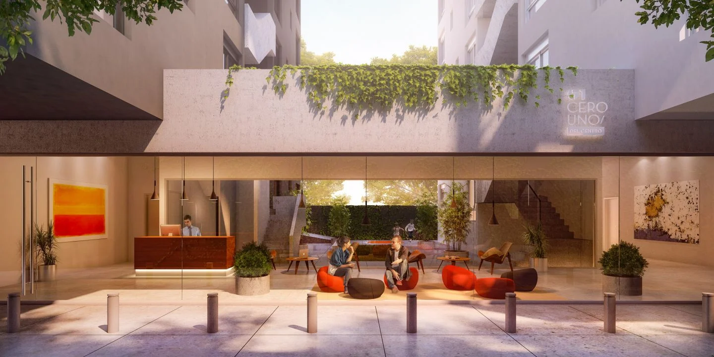 El edificio 01 Del Centro cuenta con: Parrilleros, Solarium, Espacio de Co-Living, Espacio de Co-Working, Laundry, Bike Parking.