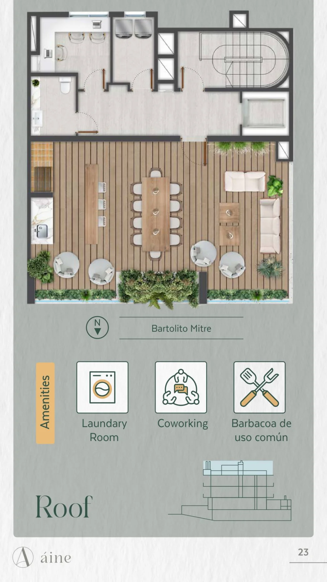 Amenities: Barbacoa de uso comun, Sala de coworking y Laundry room.