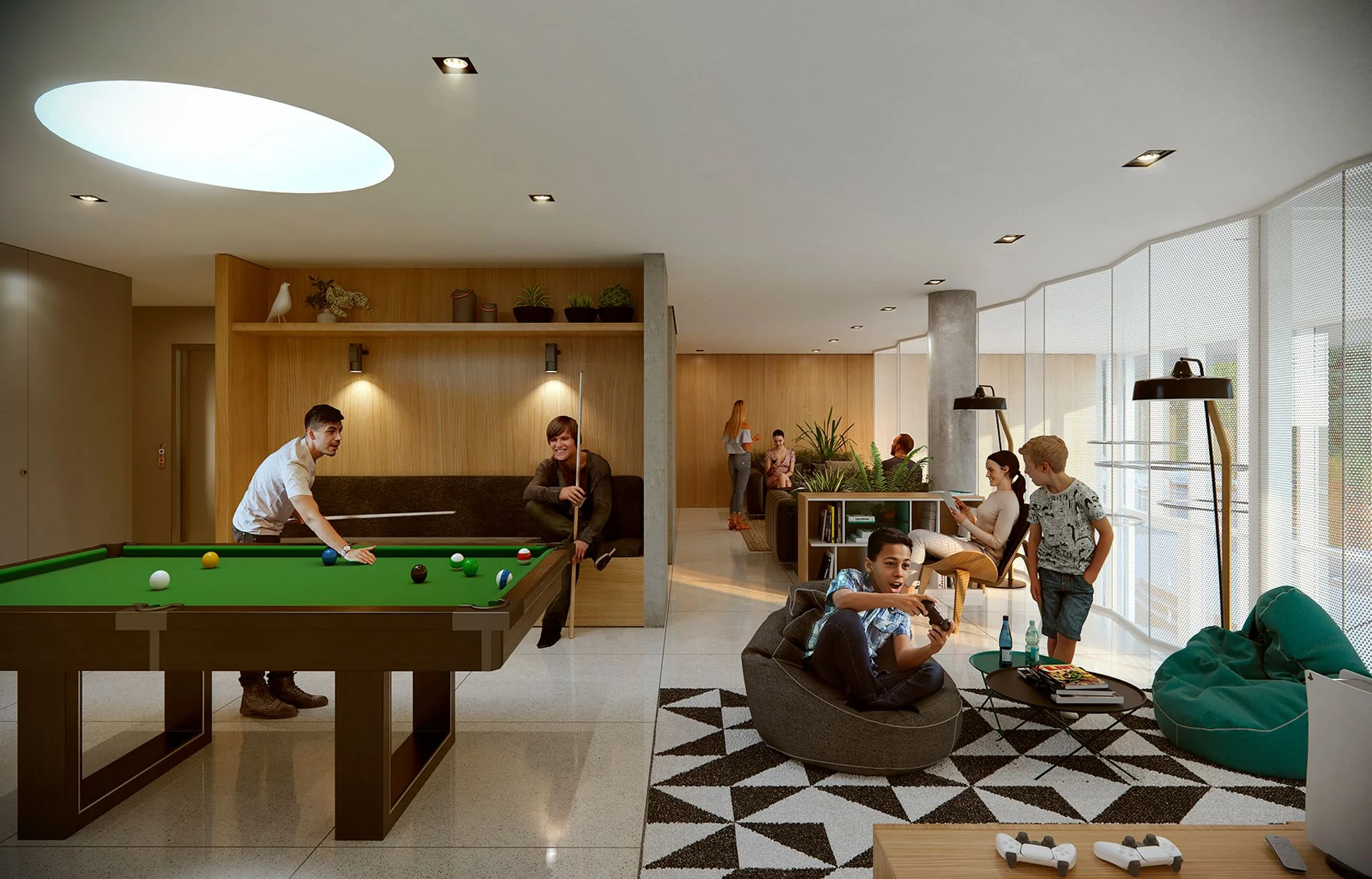 Como espacios comunes, ofrece bicicletario, laundry, gimnasio, playroom, 2 barbacoas / parrilleros y 2 terrazas lounge