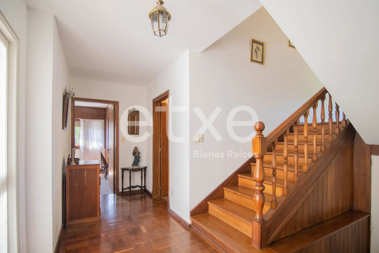 Ingreso al recibidor. Living con conexión al estar con estufa a leña y salida al jardín. Comedor con conexión con cocina, la cual esta equipada con isla y salida lateral a cochera techada. Baño social. Dormitorio en suite con vestidor. Segundo dormitorio también en suite.