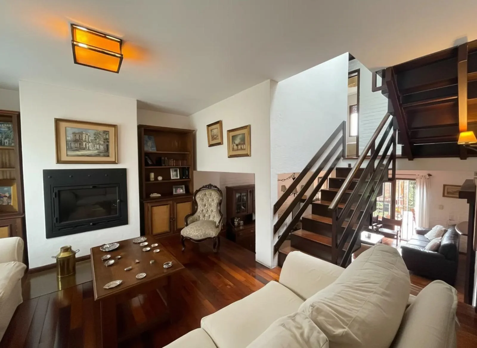 Espacioso living social con estufa a leña