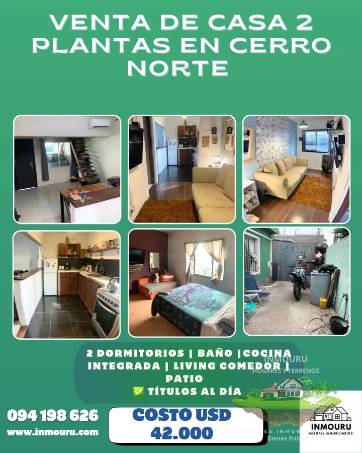 VENTA DE CASA EN CERRO NORTE Ubicada por calle Haití ???? Superficie: 56 m² ???? Precio: USD 42.000 ✅️ Títulos al día Cuenta con: ✅ 2 dormitorios ✅ Cocina definida con barra ✅ Living comedor ✅ Patio ✅ Cochera Honorarios: 3% Agente Vanesa Referencia Interna : Tera-1930