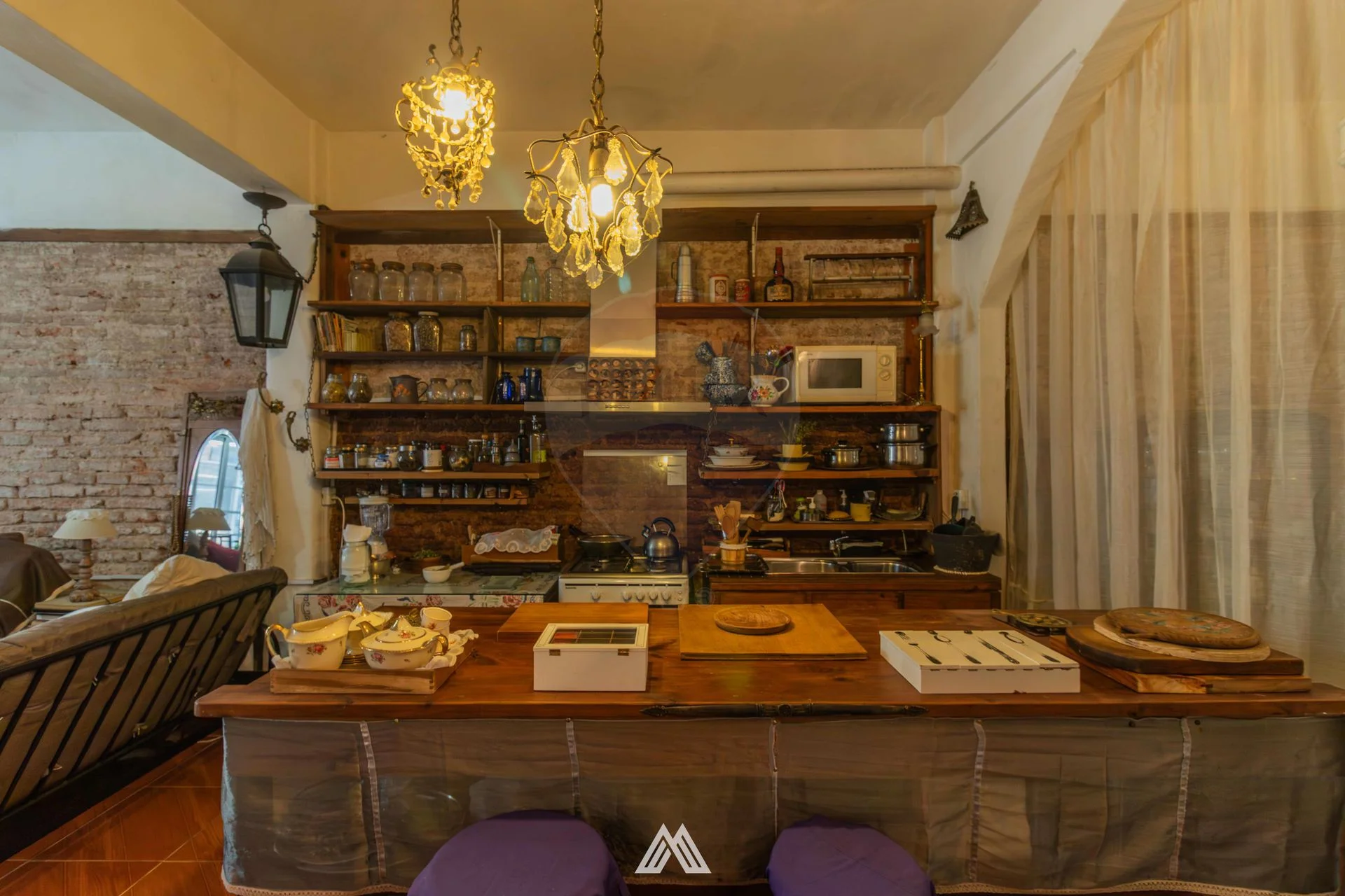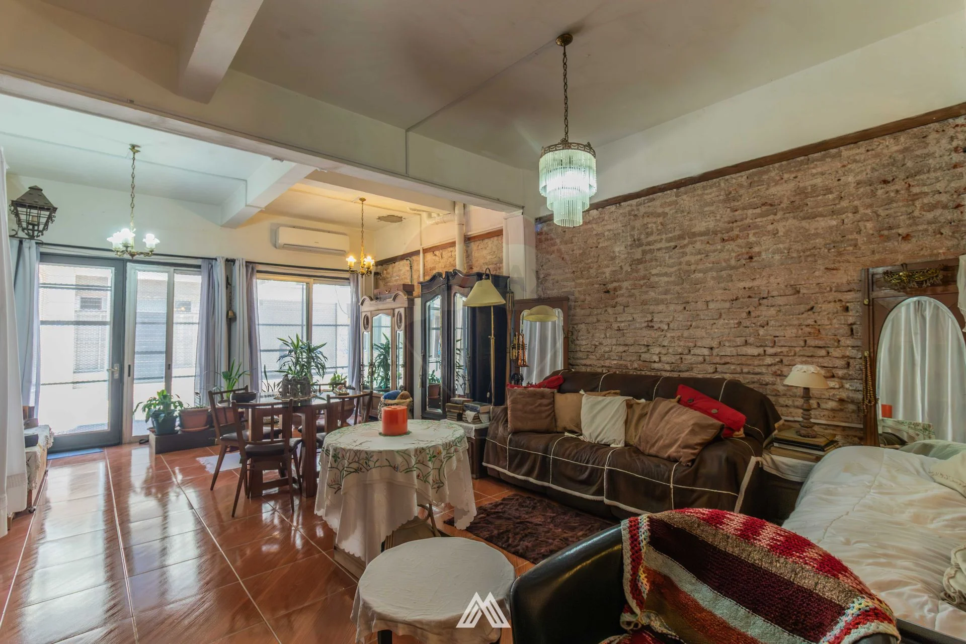 Construcción tradicional de gran calidad en buen estado de conservación, interior estilo industrial con ladrillos a la vista.