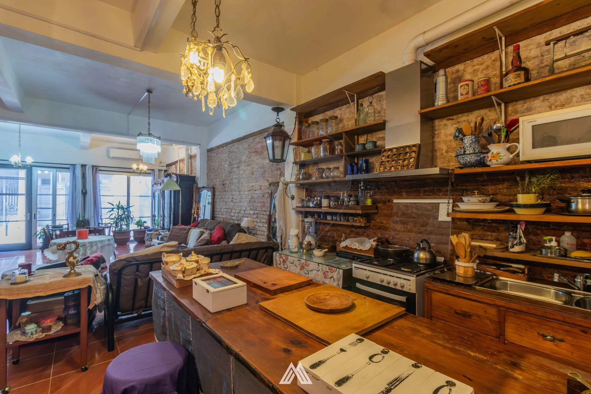 Cuenta también con la posibilidad de funcionar como vivienda. Tiene dos baños, uno de ellos actualizado y cuenta con cocina integrada al ambiente.