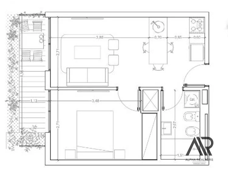 Cuenta con un estar comedor con salida a terraza y cocina integrada, un dormitorio y baño completo.