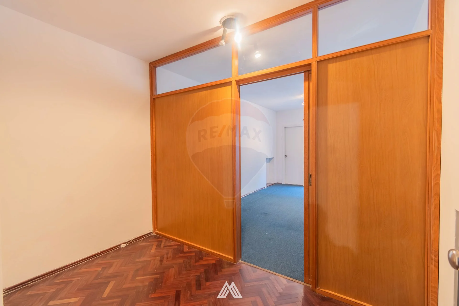 Al ingreso dispone de sala de espera separada con mampara de madera y luego el ambiente principal del estudio, con ventana al contrafrente y orientación oeste, recibiendo sol en la tarde.