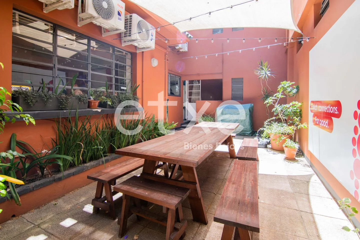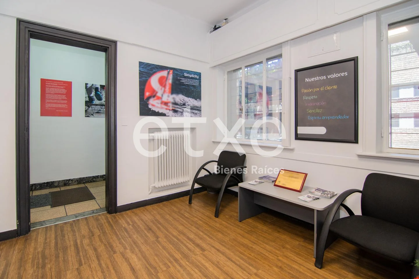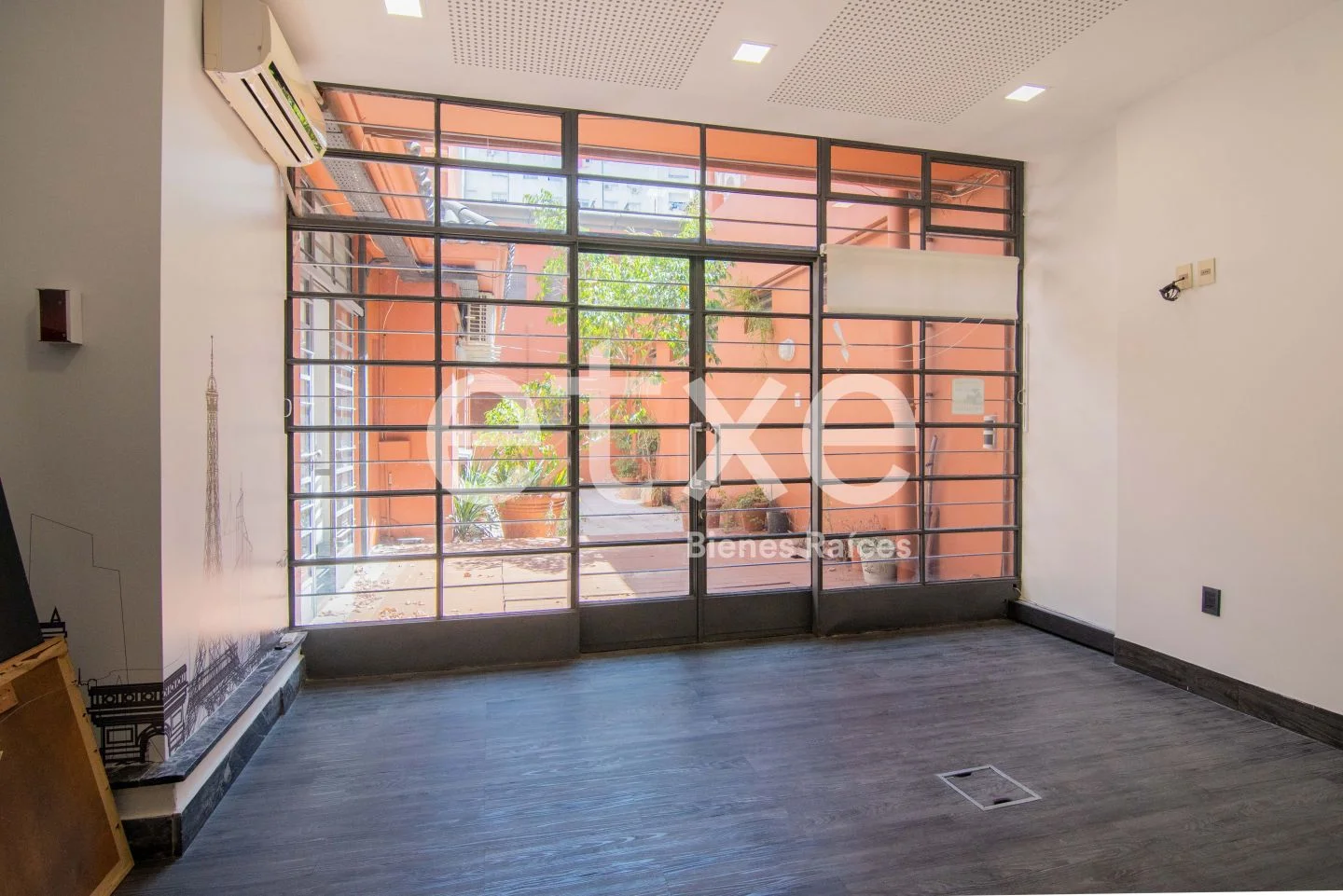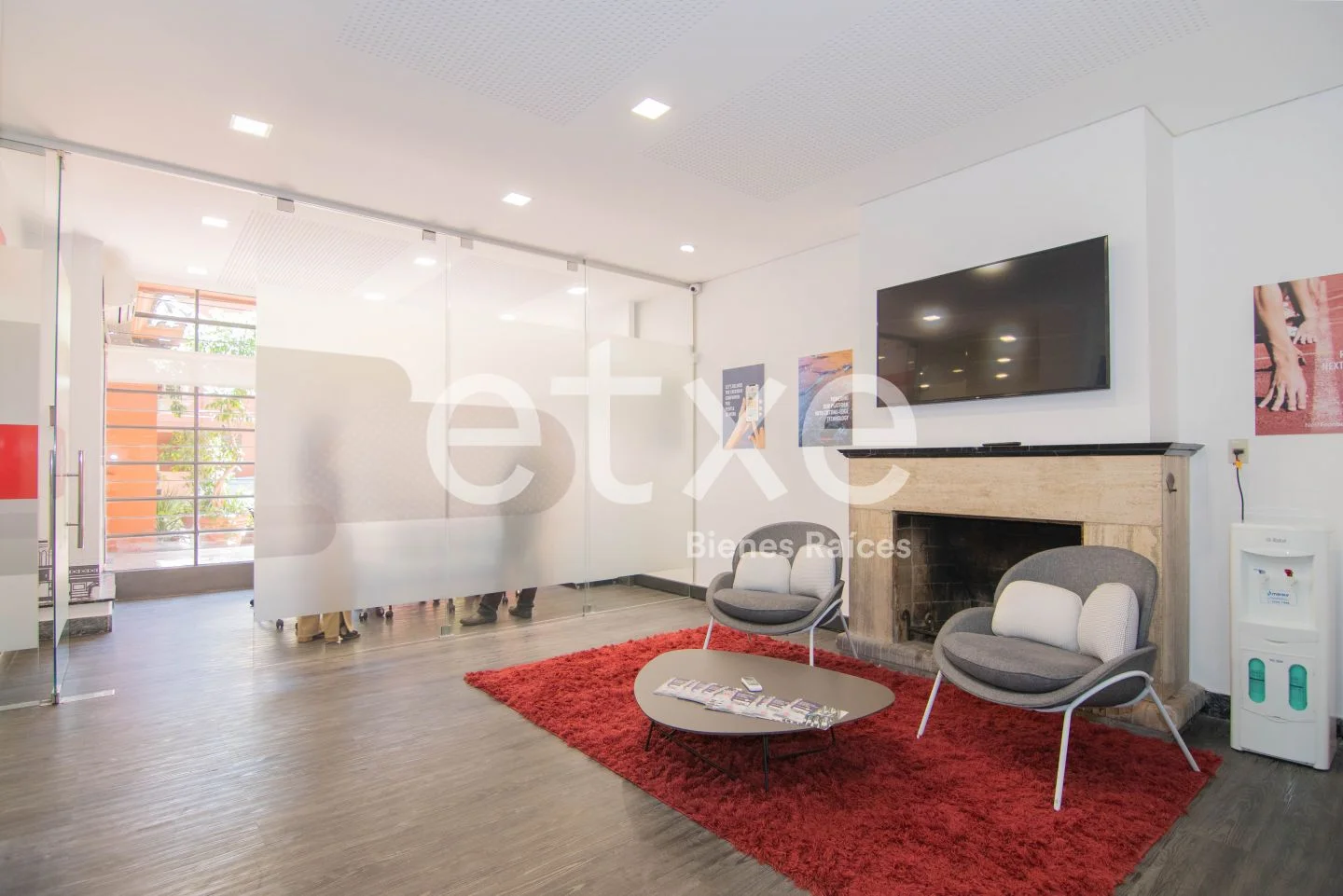 En la planta baja, cuenta con recepción, hall de distribución, dos salas de reuniones, depósito y baño. Además, tiene conexión al comedor y la cocina con salida al patio.