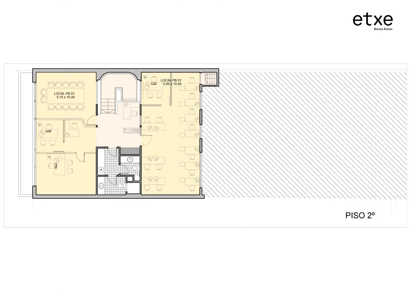 El segundo nivel consta de dos amplias oficinas con kitchenette y dos baños.