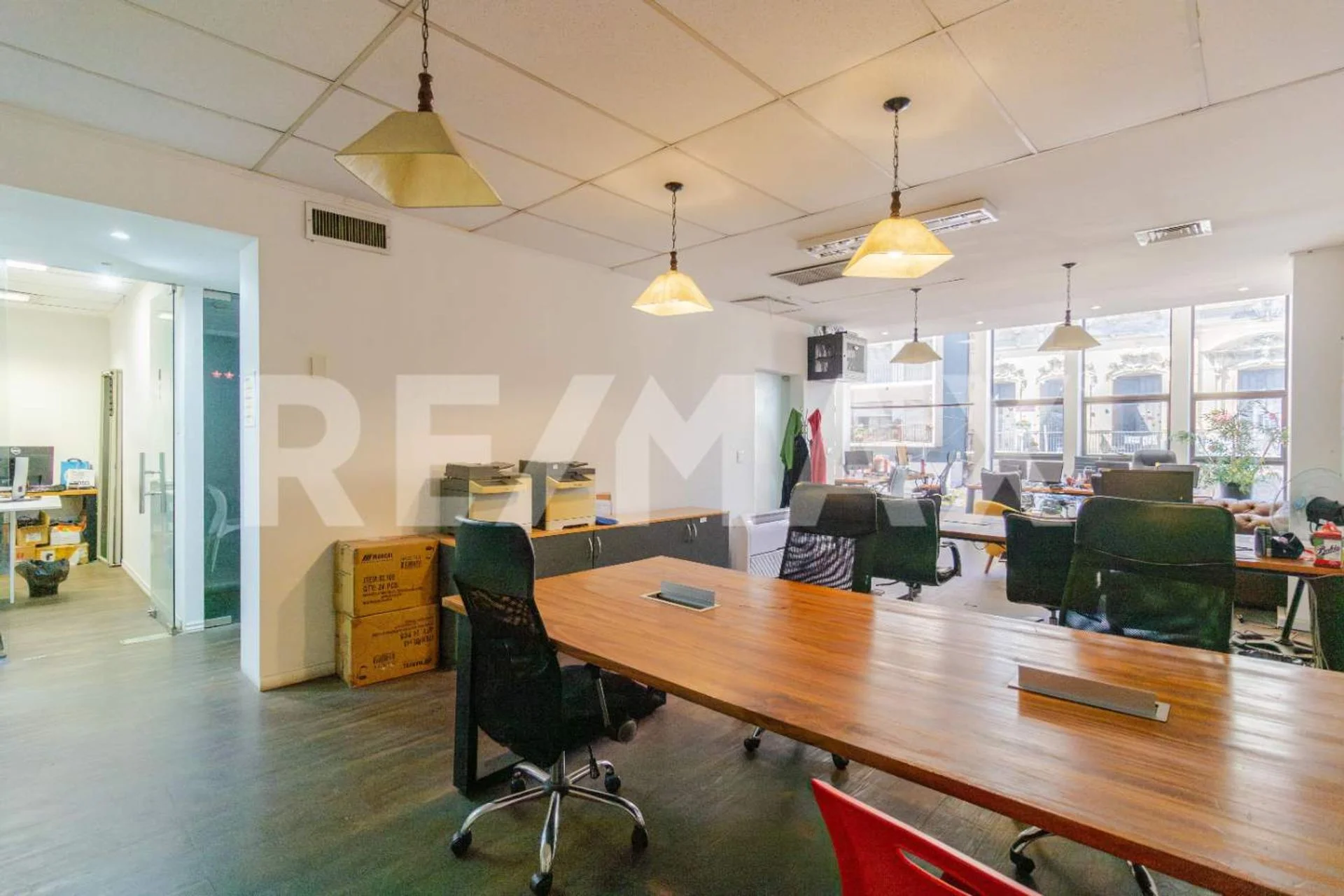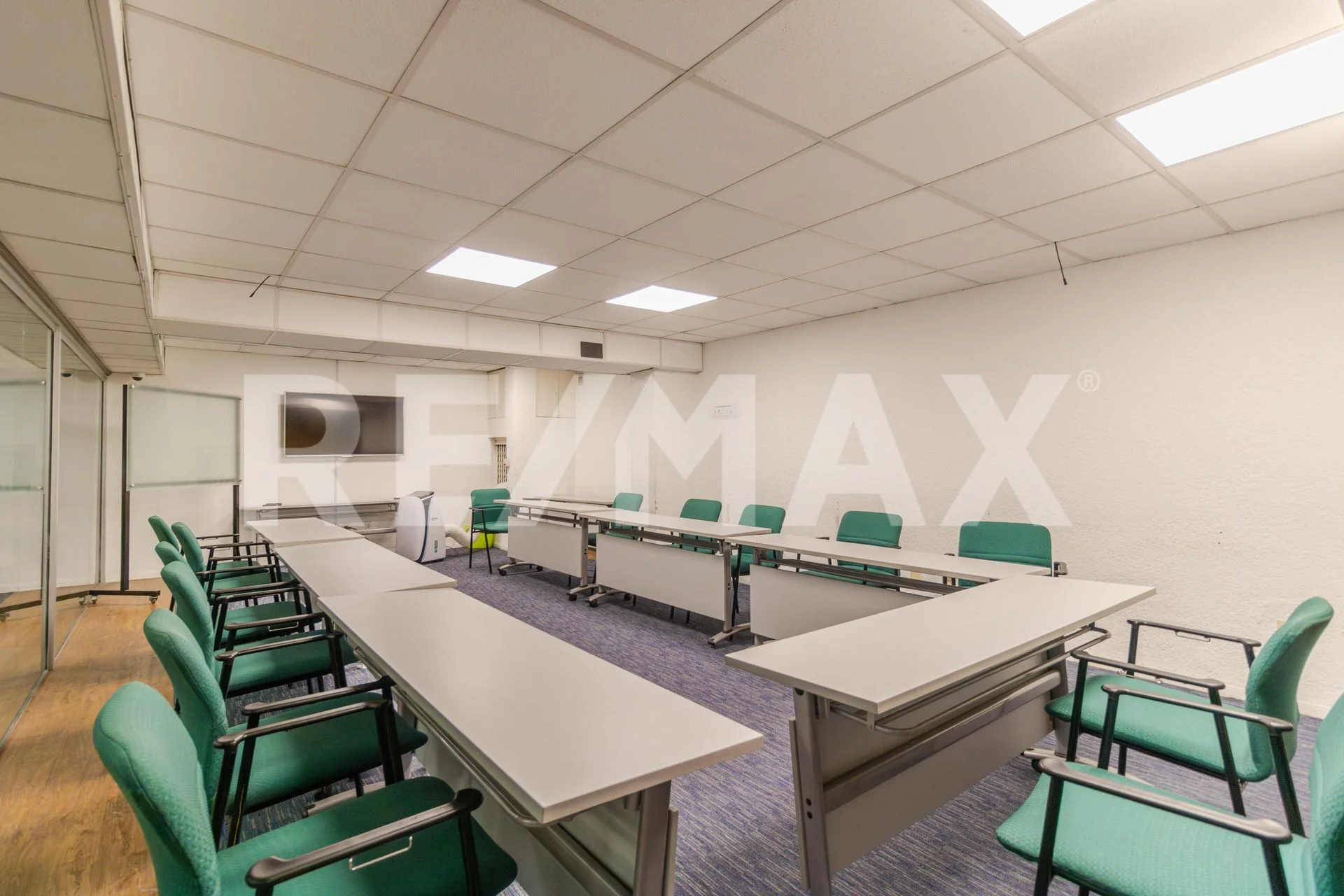 Pisos 1 y 2(228m2 primer piso y 213m2 segundo piso): Espacios versátiles con divisiones modulares y baños en cada piso. El primer piso incluye un salón de clases y oficinas privadas, mientras que en el segundo hay múltiples oficinas y salas de reuniones.