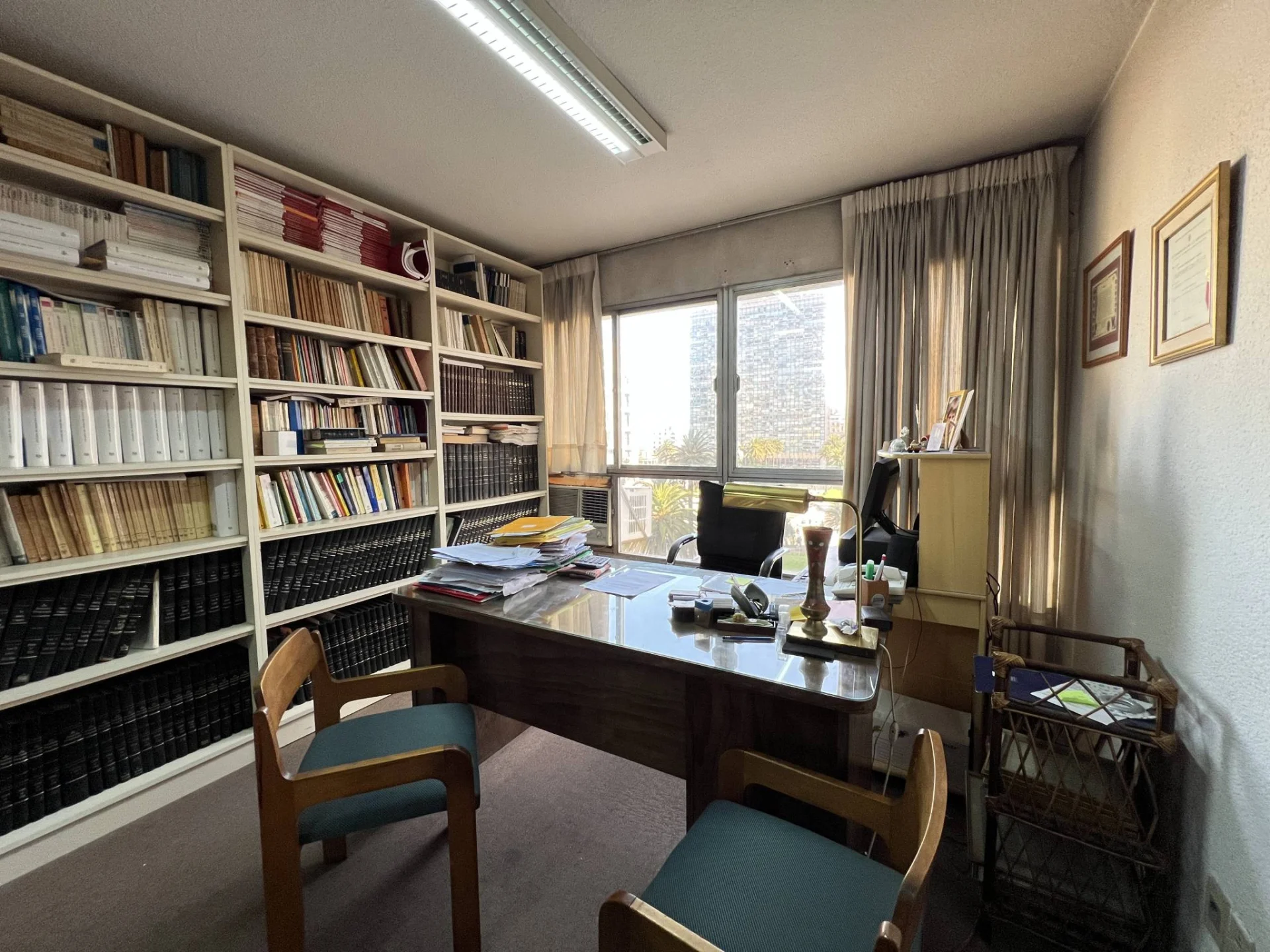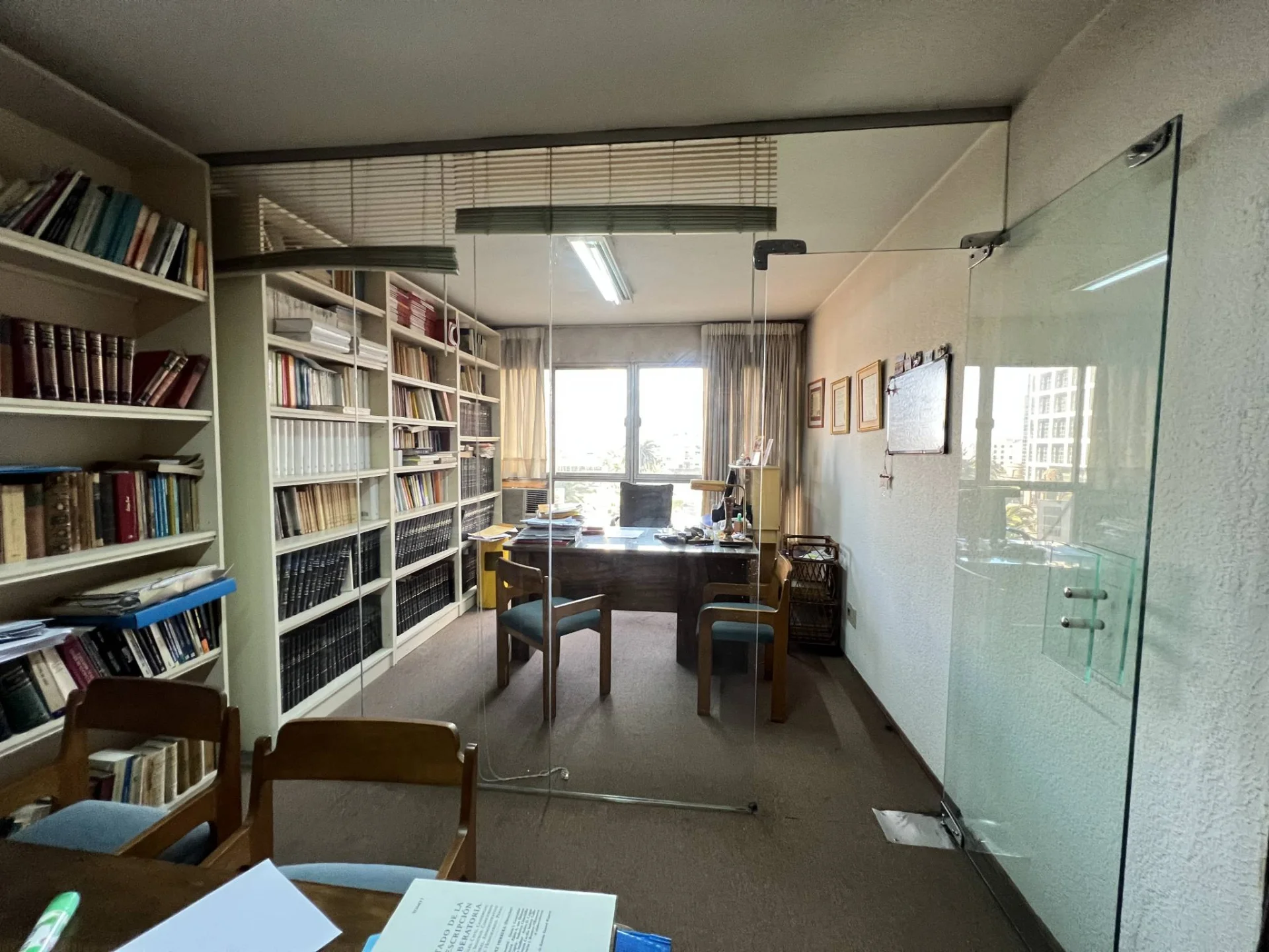 Oficina al frente con gran ventanal, muy luminosa, posee una division de vidrio para separar un despacho del otro. Cuenta con cocina la cual anteriormente era un baño, el cambio fue porque actualmente esta fusionada con otra unidad, cuando se vende se vuelve al original.