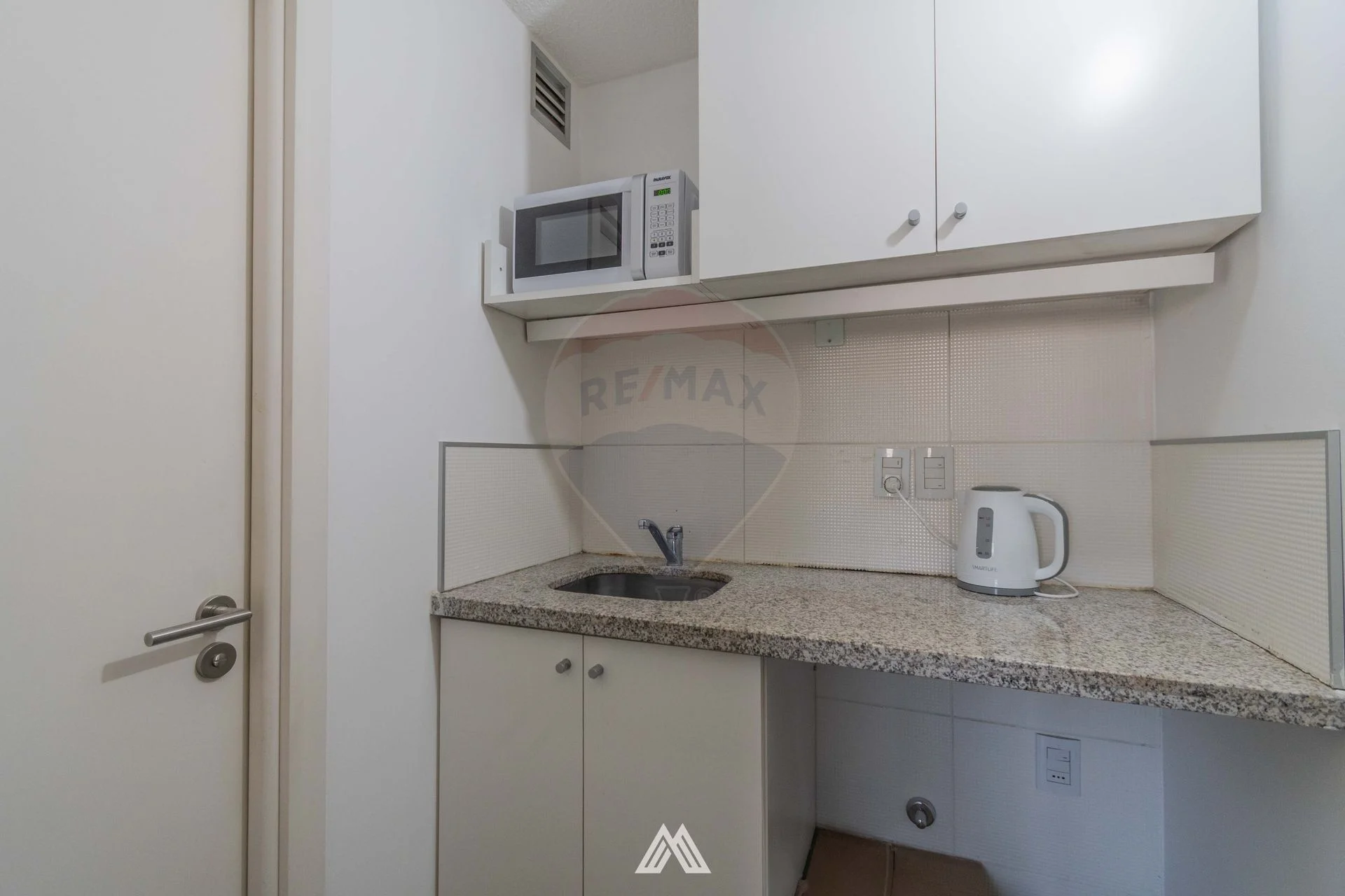 Moderna oficina comercial de 45 m², ideal para uso profesional o como inversión. Cuenta con kitchenette y baño completo, fue recientemente pintada y dispone de preinstalación para aire acondicionado.