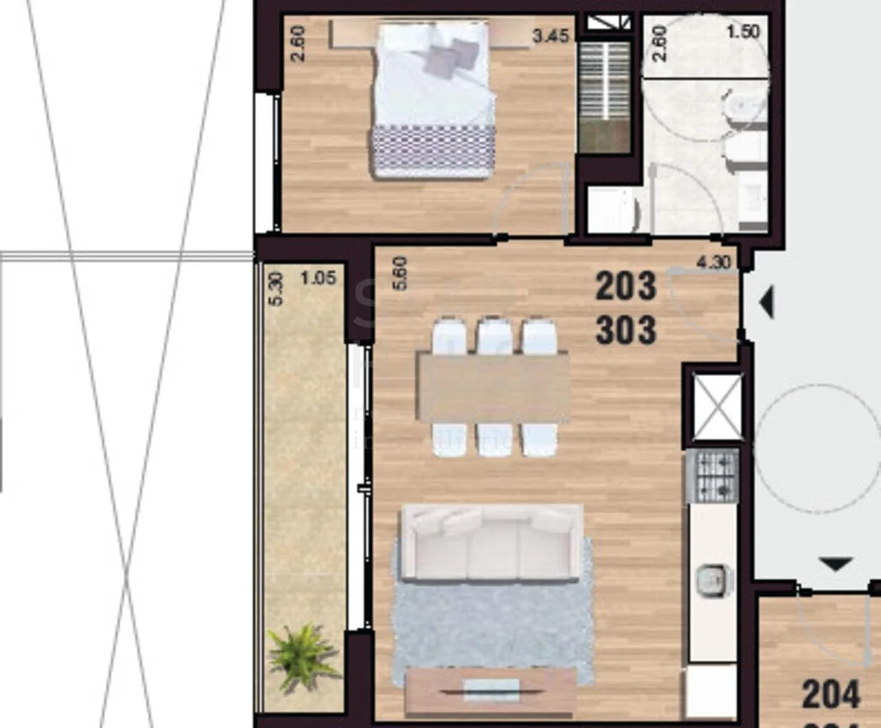 StarHaus Negocios Inmobiliarios vende cómodo apartamento a Estrenar de 1 dormitorio + Living Comedor con cocina integrada + Balcón.