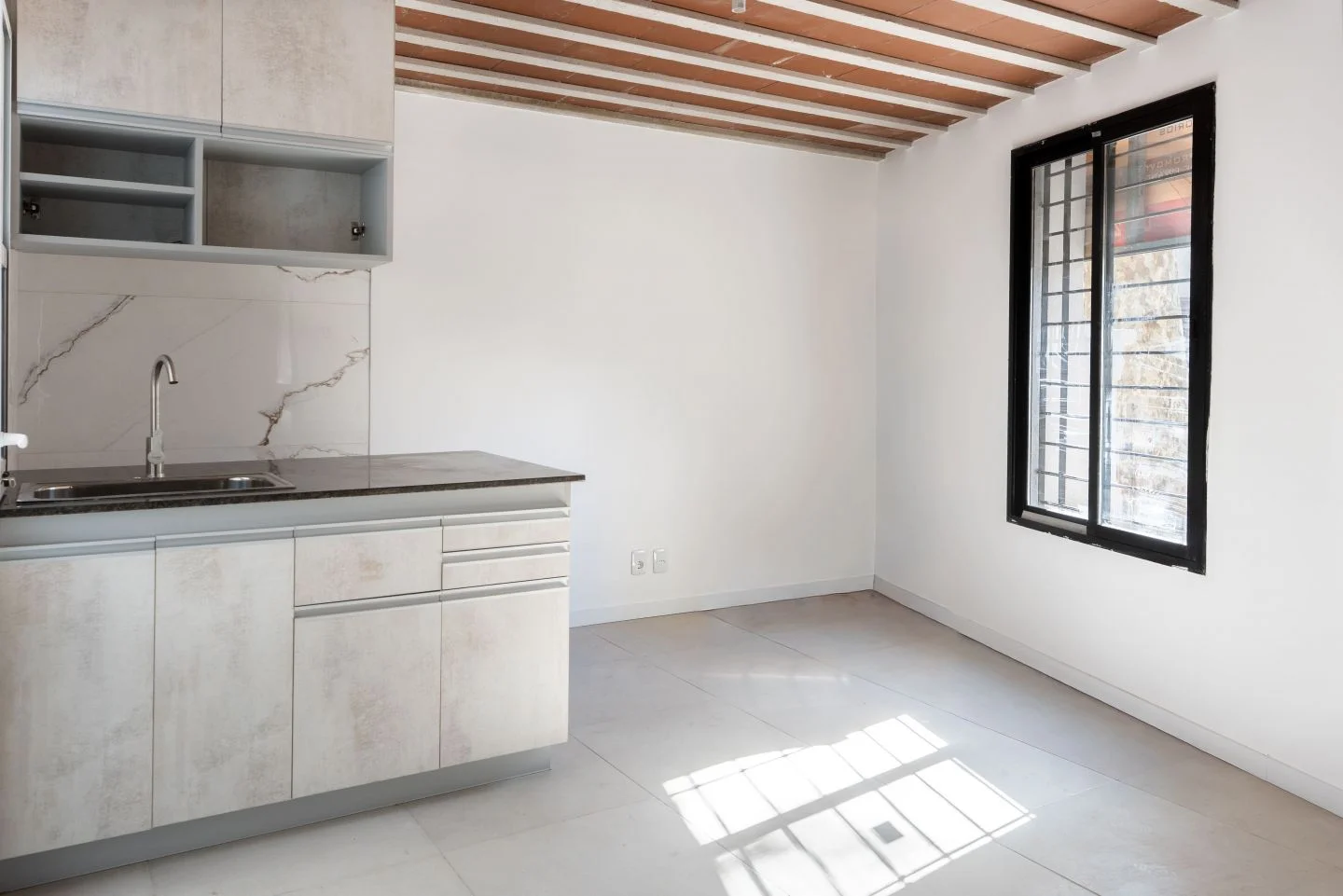 Se ingresa directamente a la planta baja, la cual cuenta con sala de estar, ventana que da al exterior, cocina integrada y salida al patio interno. Subiendo la escalera llegamos al primer piso, el cual cuenta con 2 dormitorios al frente y con 1 baño completo.