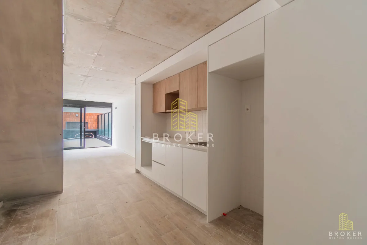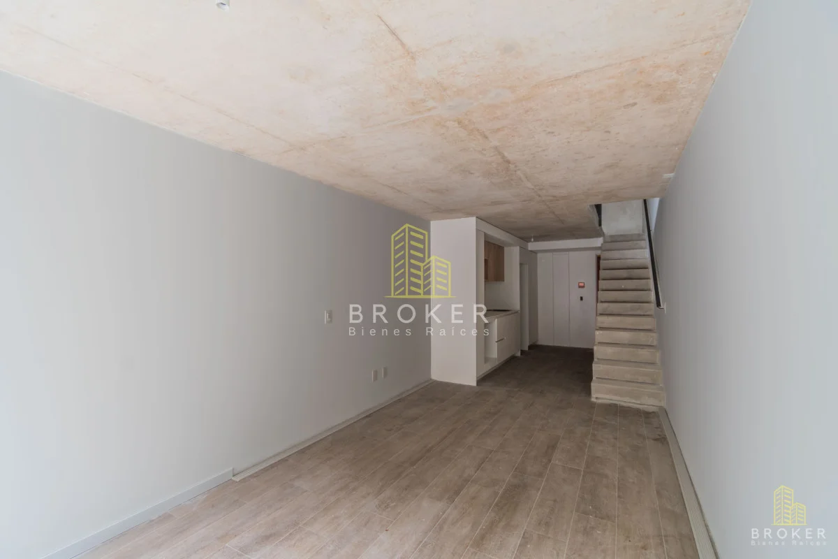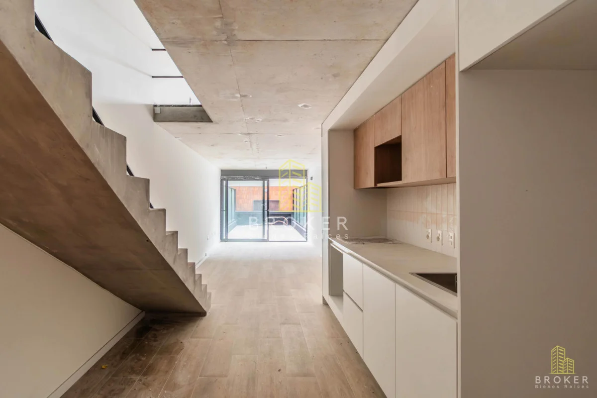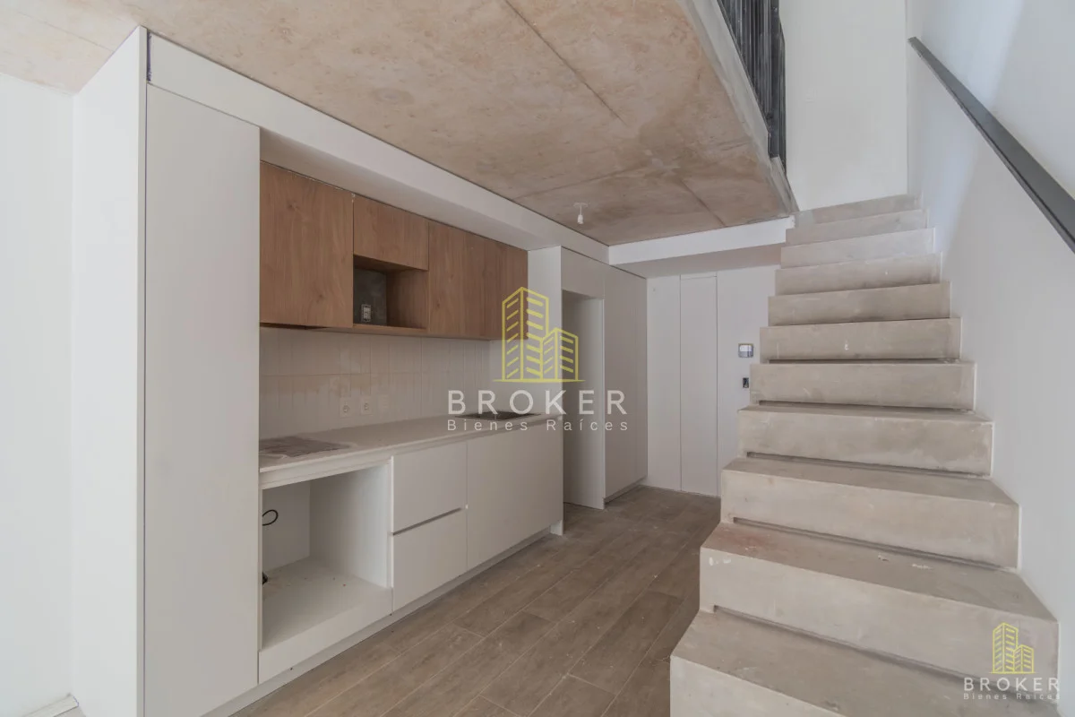 El espacio integra living-comedor con cocina moderna, baño completo y planta alta versátil que permite dormitorio y área de trabajo, con excelente entrada de luz natural.