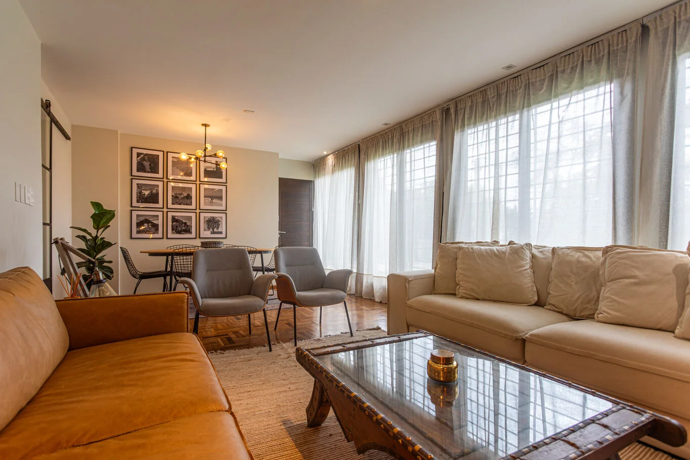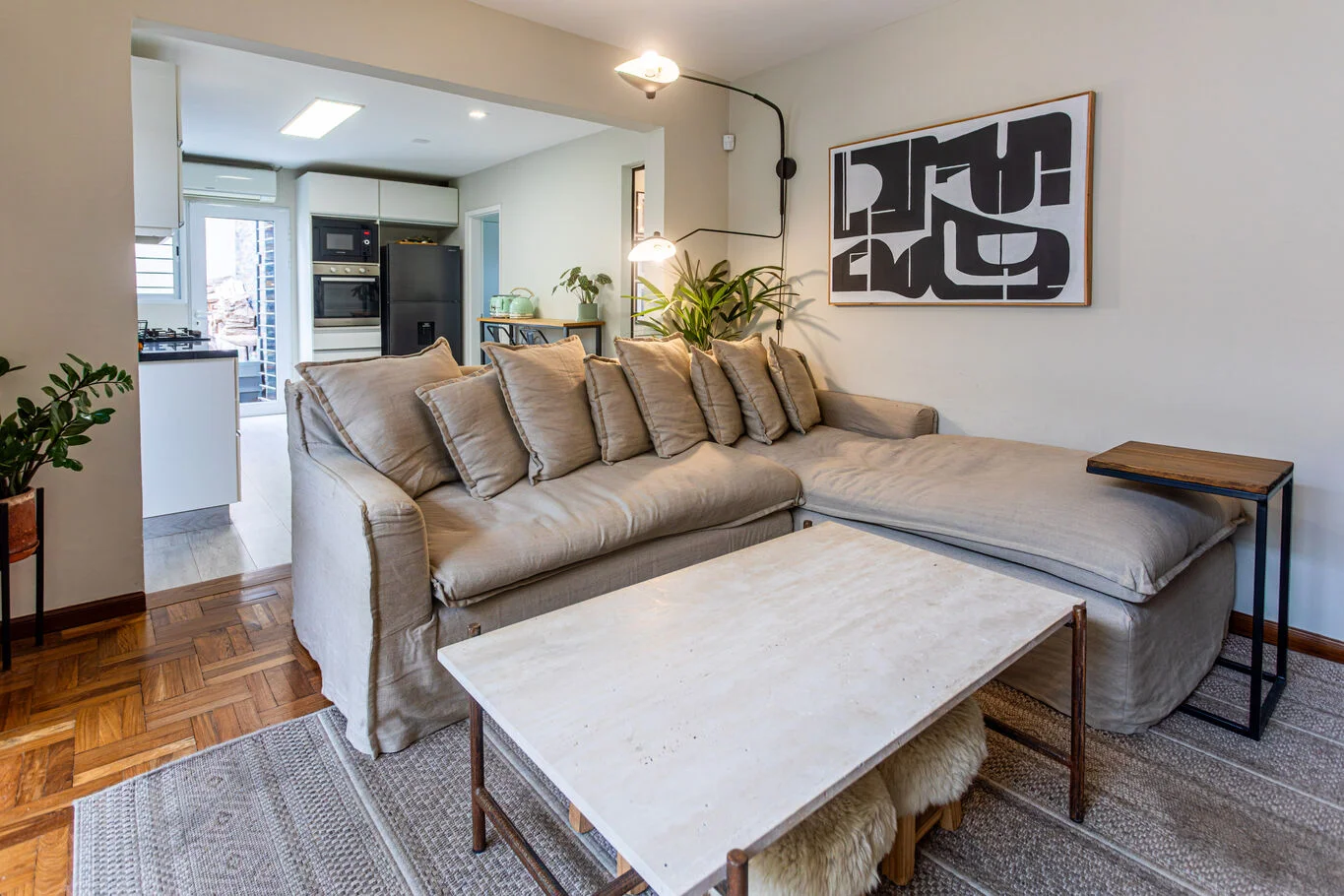 Al ingresar, nos recibe un living comedor amplio y luminoso, con grandes ventanales y pisos de parquet originales en excelente estado, que aportan carácter y elegancia.