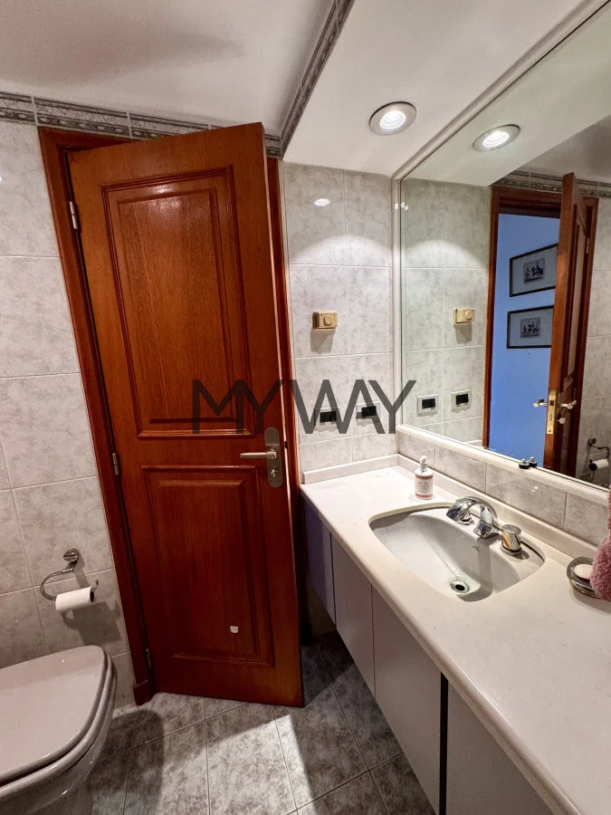 Master suite con vestidor. Baño con luz natural, revestido en mármol y doble bacha