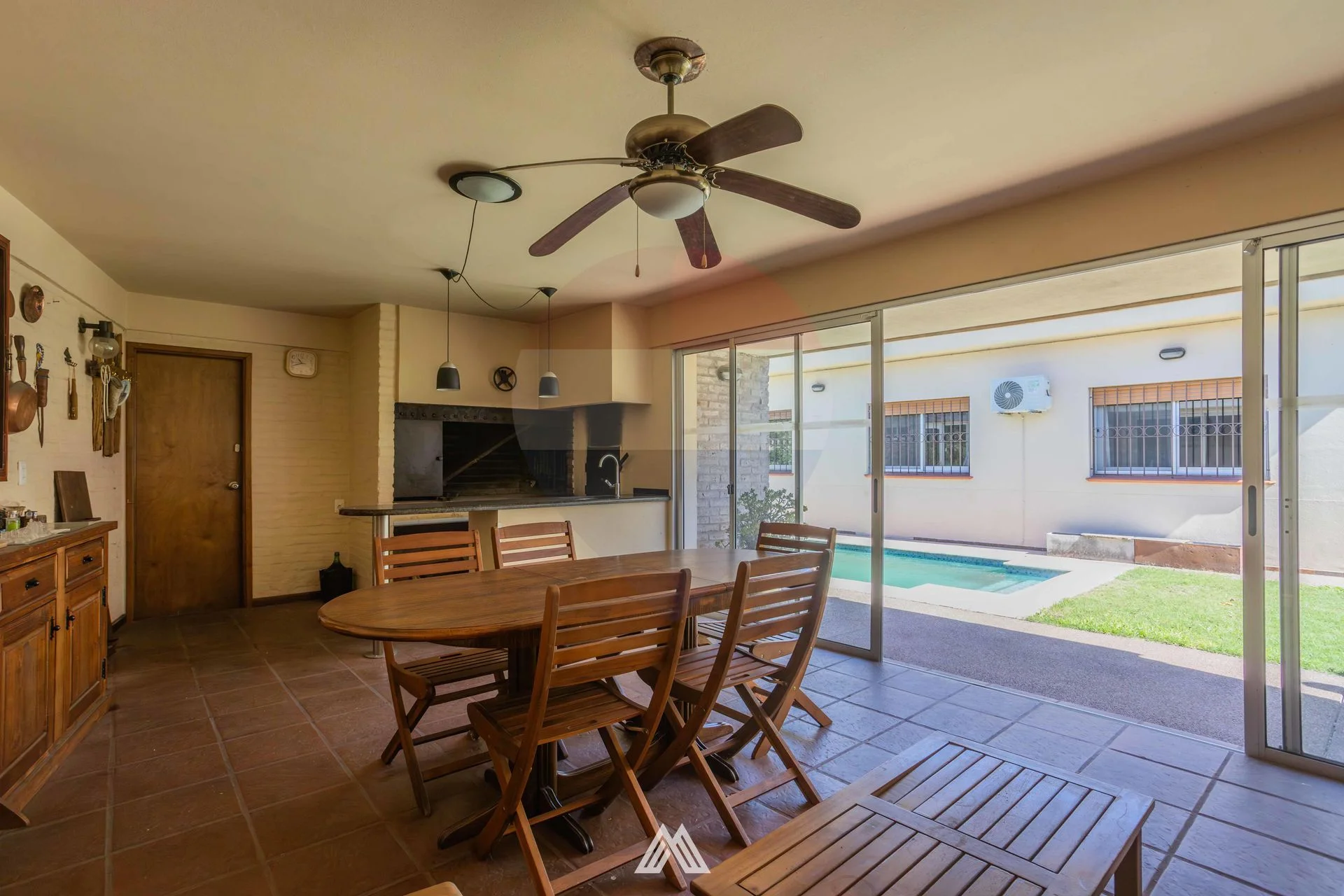 Comedor integrado con cocina, living, y sala de estar con estufa a leña. Equipada con 5 aires acondicionados y calefactores en casi todos los ambientes, cortinas eléctricas y cielorrasos de madera hacen de este hogar un lugar realmente acogedor!