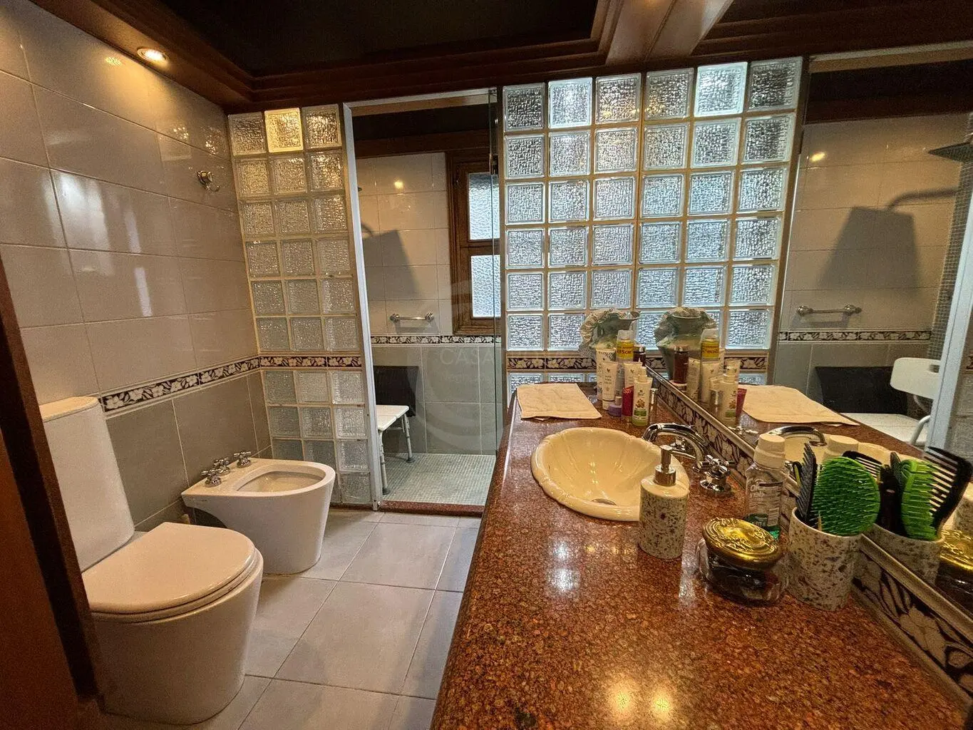 Al frente, un portón automatizado con reja brinda mayor seguridad y comodidad de acceso. En planta baja, la casa ofrece un excelente espacio de living con estufa a leña, junto a un estar en una zona moderna con salida directa al patio, generando ambientes integrados y luminosos. Se suma un cómodo estar-comedor y una cocina definida de generosas dimensiones, también con acceso al patio. En este nivel se encuentran tres dormitorios con placares, dos baños completos, y un dormitorio de servicio con su propio baño.