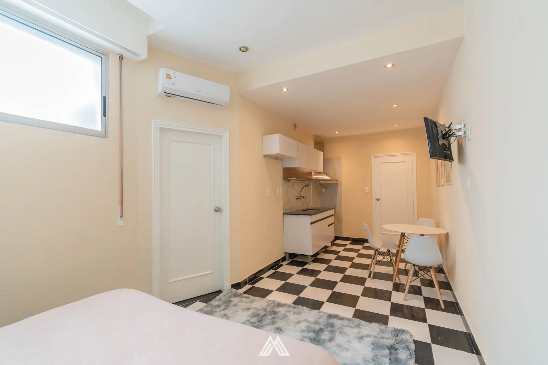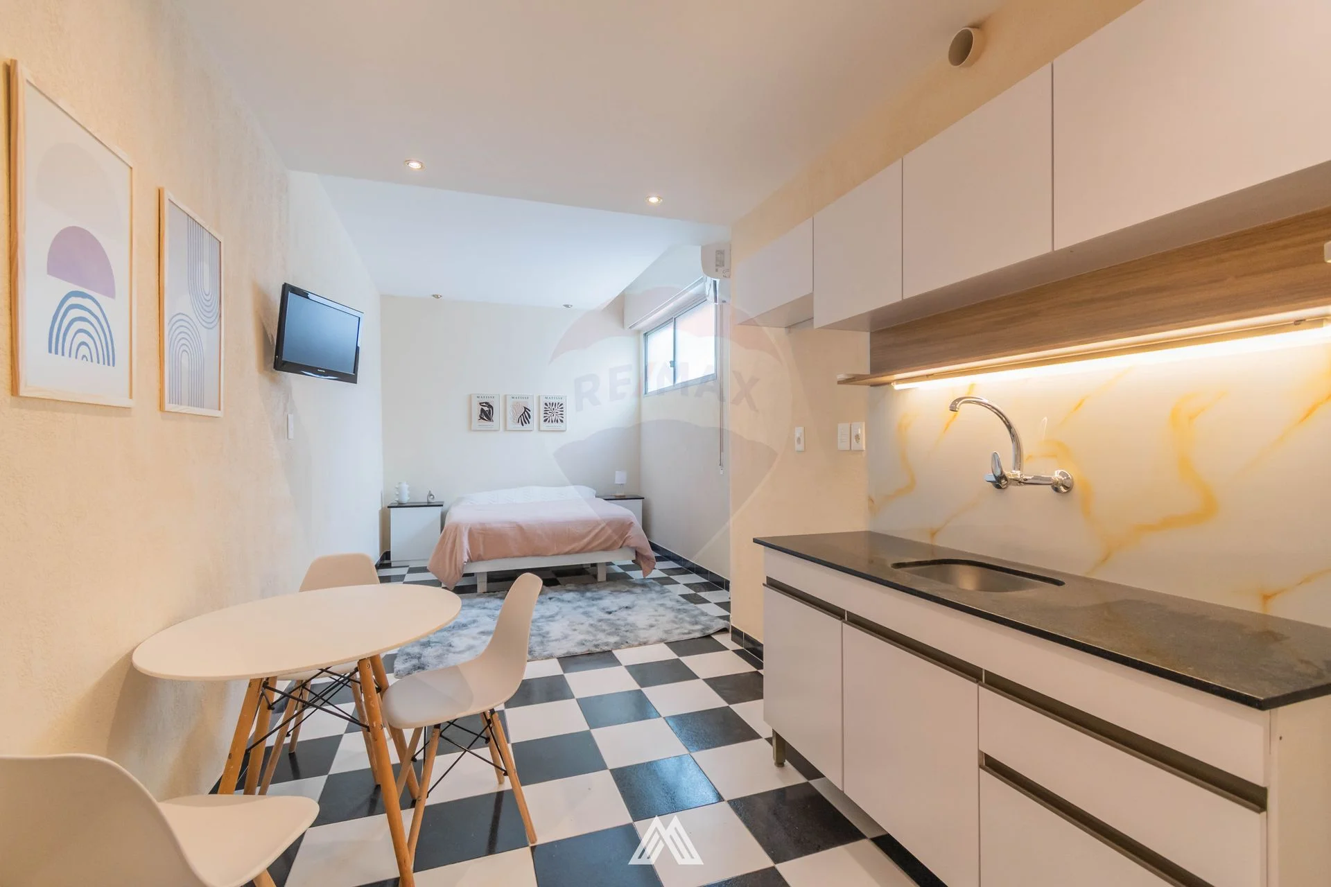 La unidad se desarrolla en una planta por escalera. El ambiente cuenta con cocina integrada al comedor, un espacio adicional con ventilación directa.