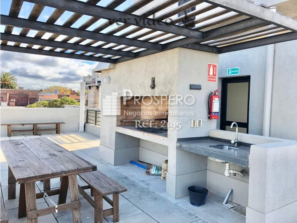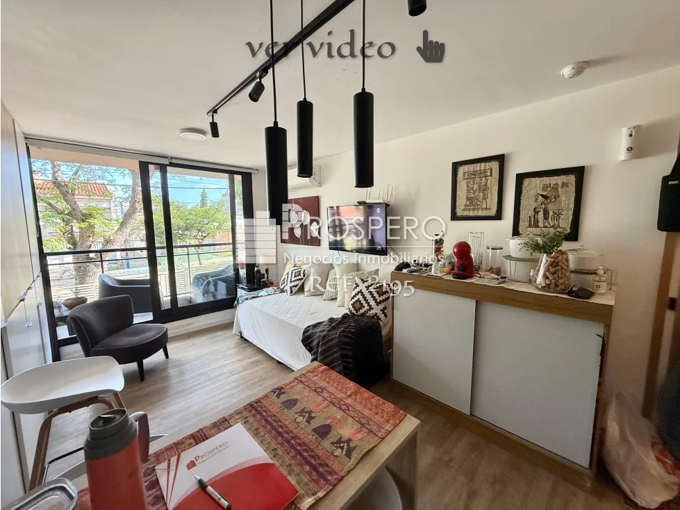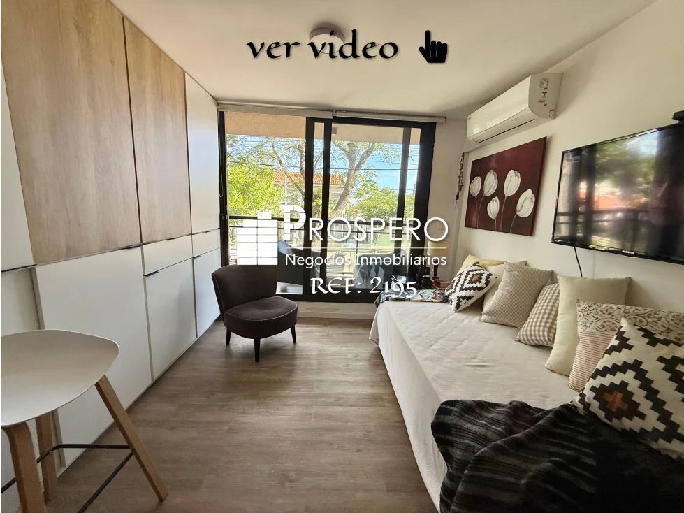 Monoambiente con salida a un hermoso balcón. Cocina integrada con barra desayunadora, espacio definido para heladera.