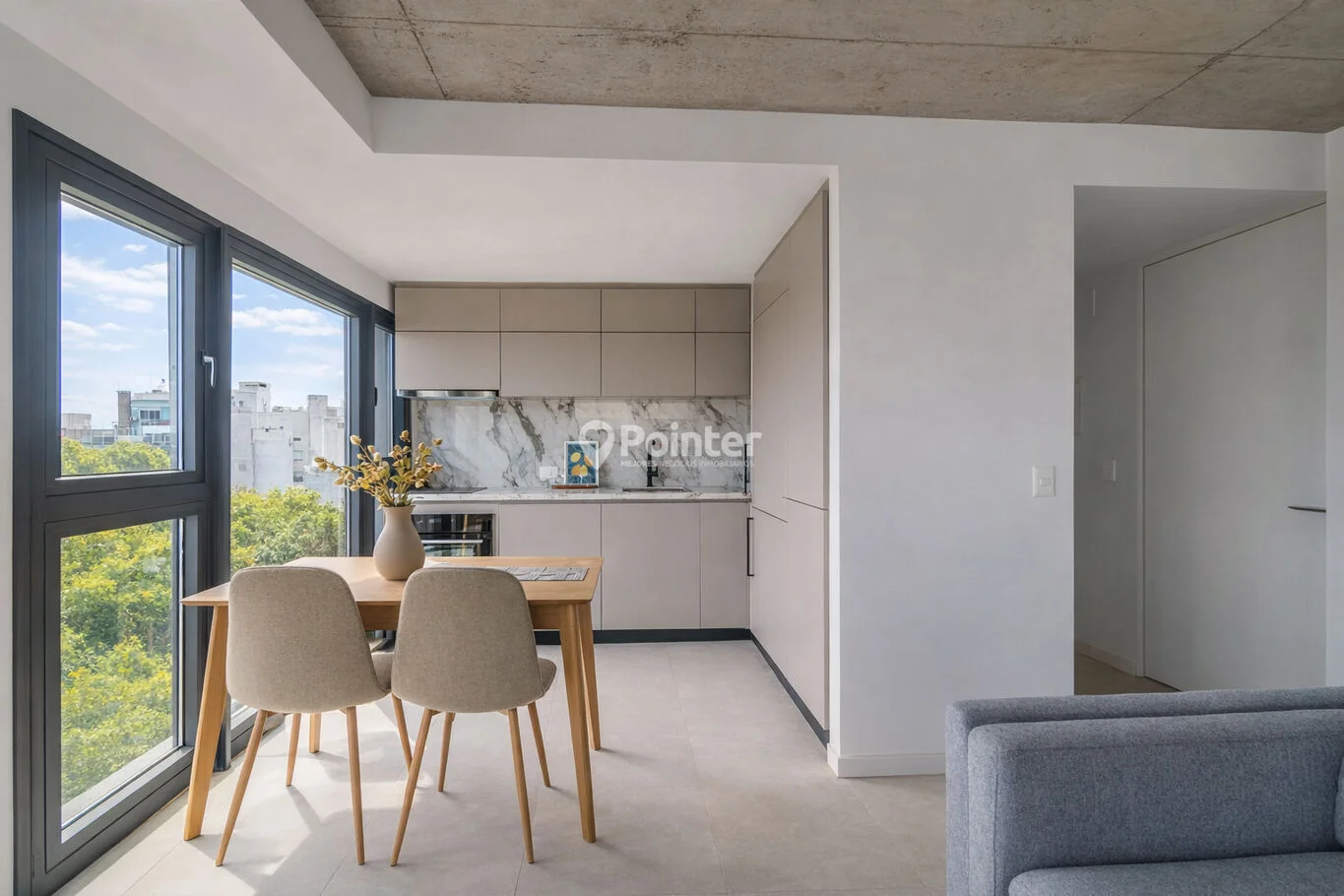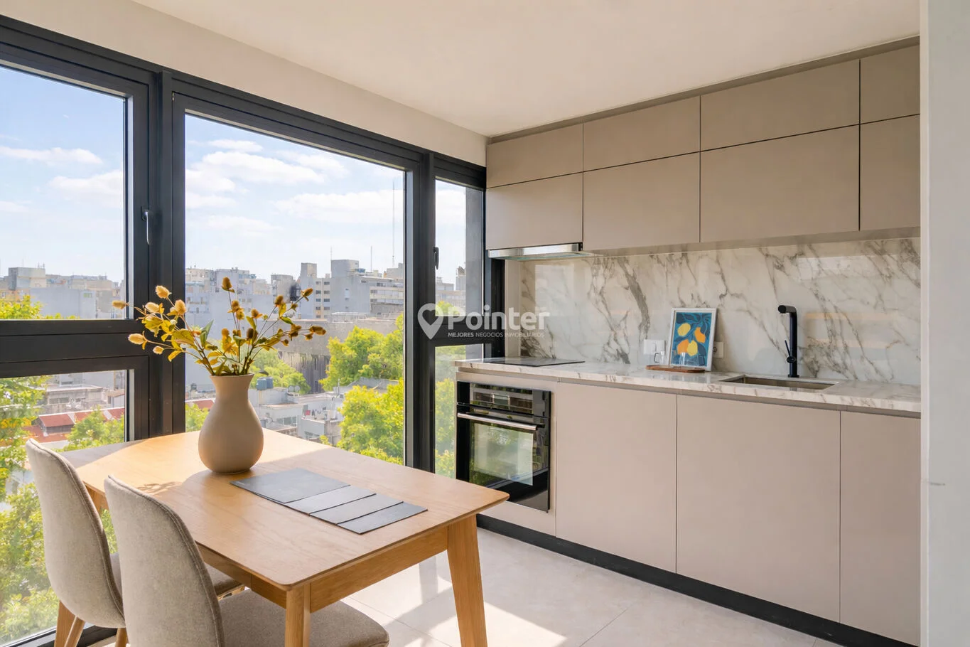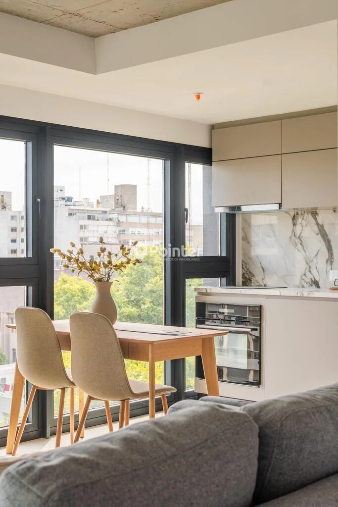 Cuenta con cocina integrada con terminaciones en mármol, un ambiente amplio y luminoso, baño de diseño y placares definidos, combinando funcionalidad y estética en un mismo espacio.