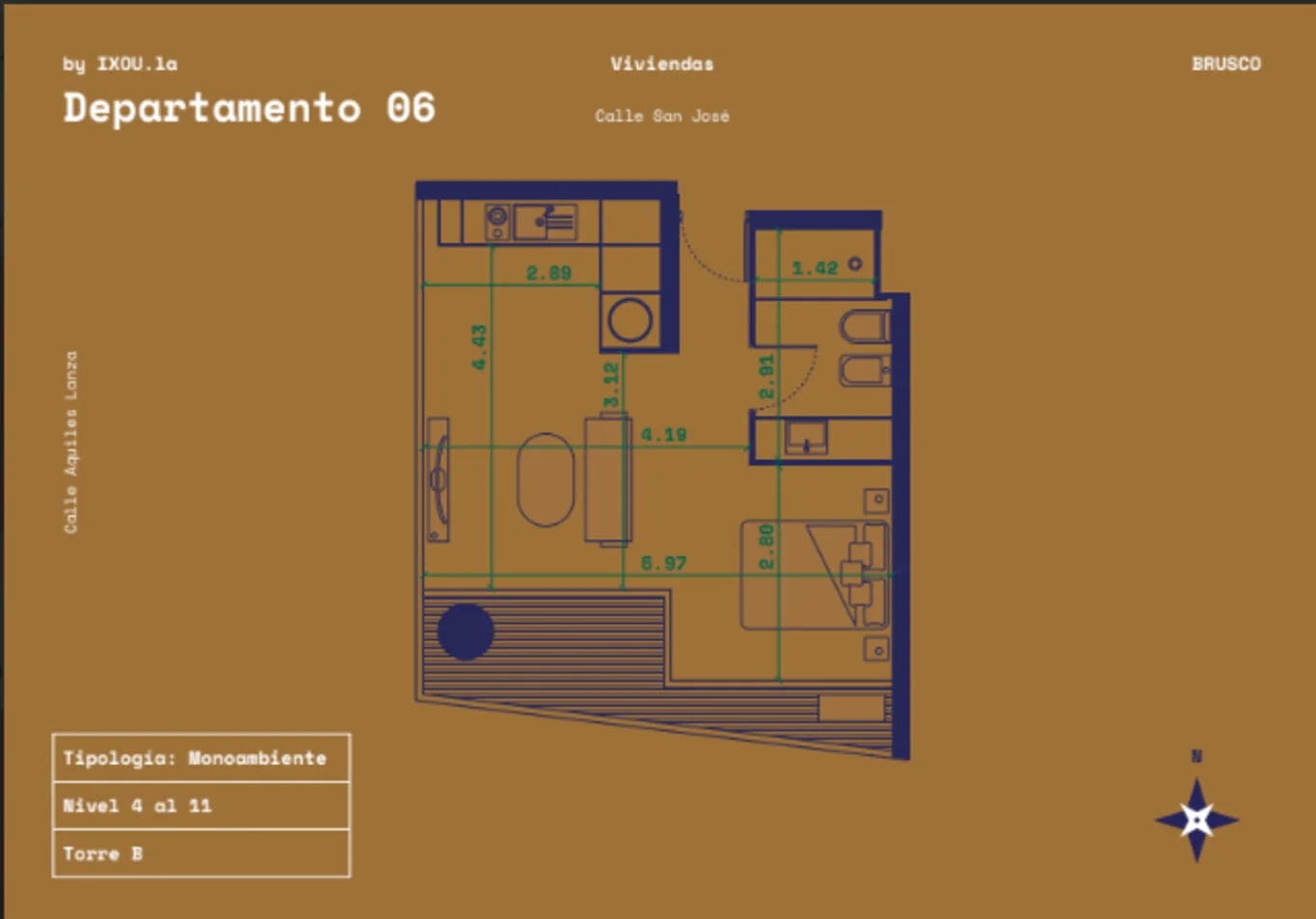 Monoambiente en BRUSCO, ubicado en piso 7 en esquina, dentro de la Torre B, con un diseño moderno y una distribución poco común en su categoría.