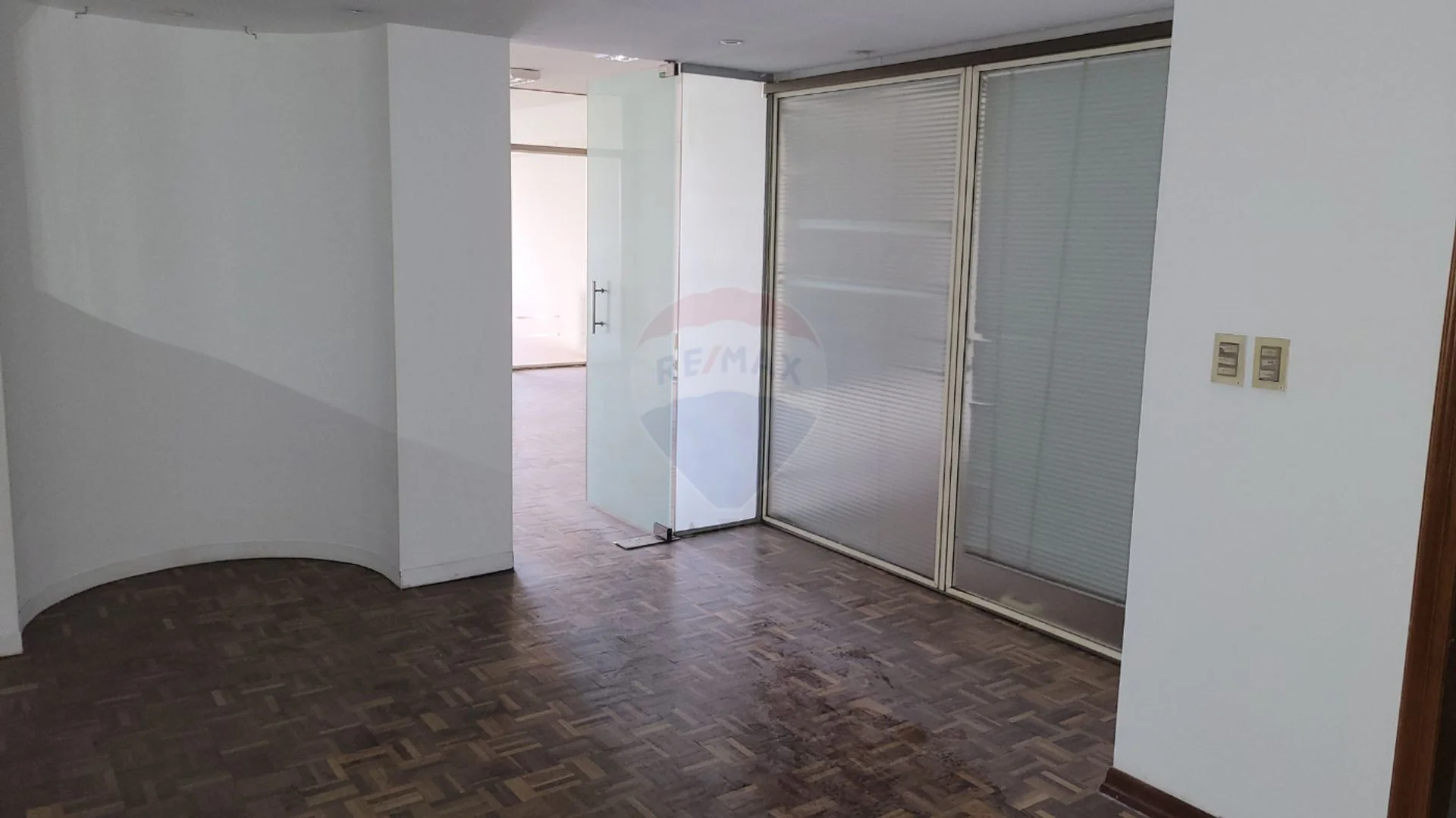 La oficina cuenta con cochera y el edificio ofrece portería presencial 24 horas.