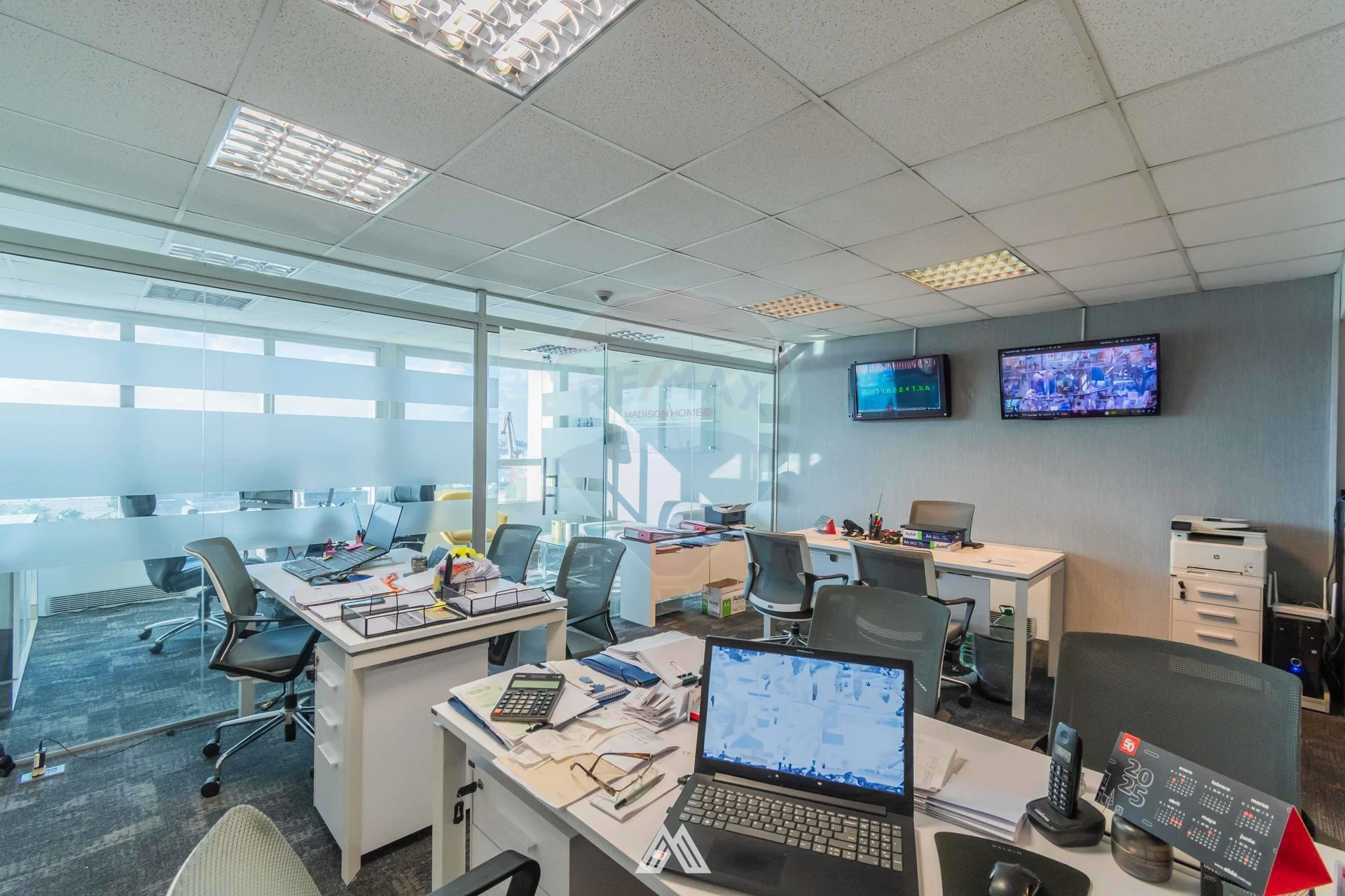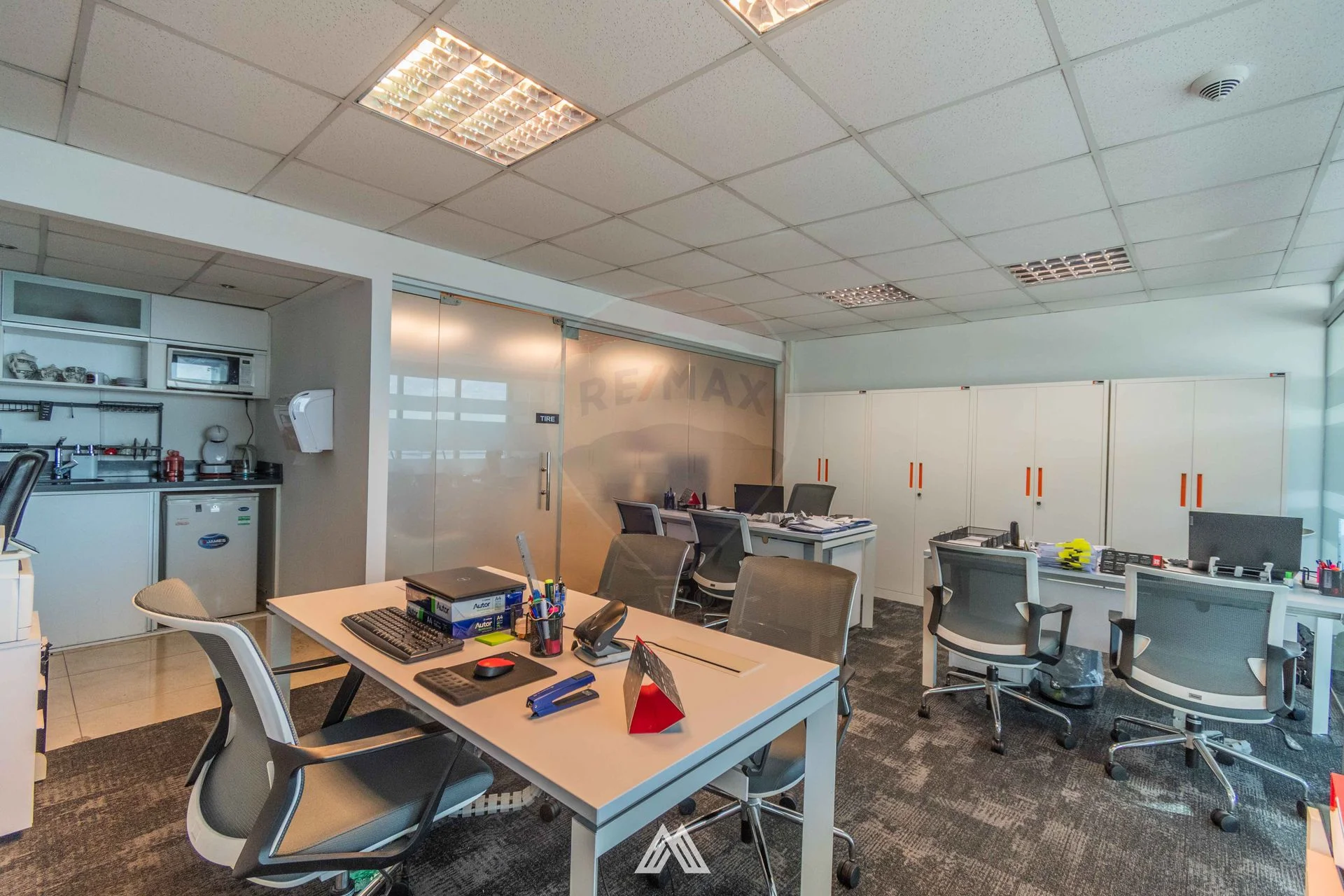 1 oficina equipada con 3 escritorios