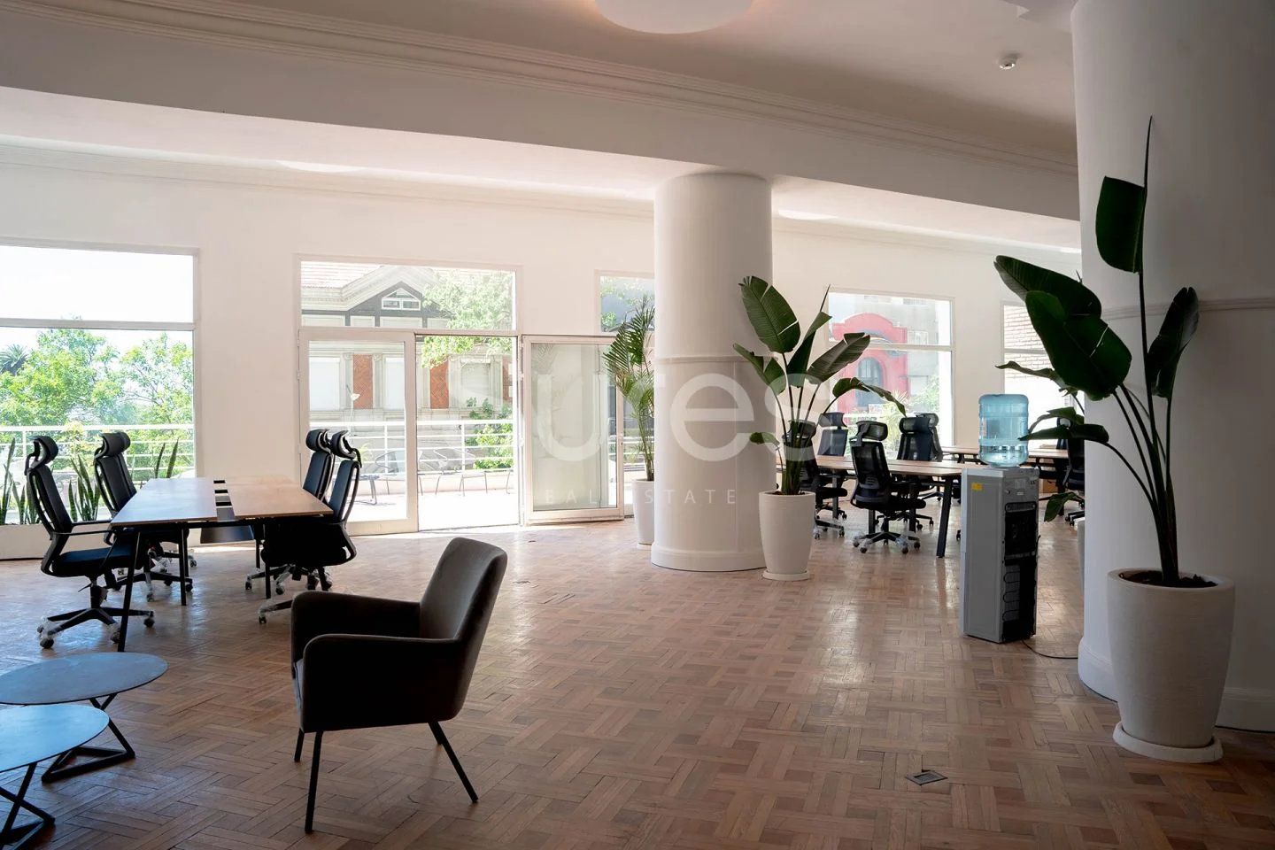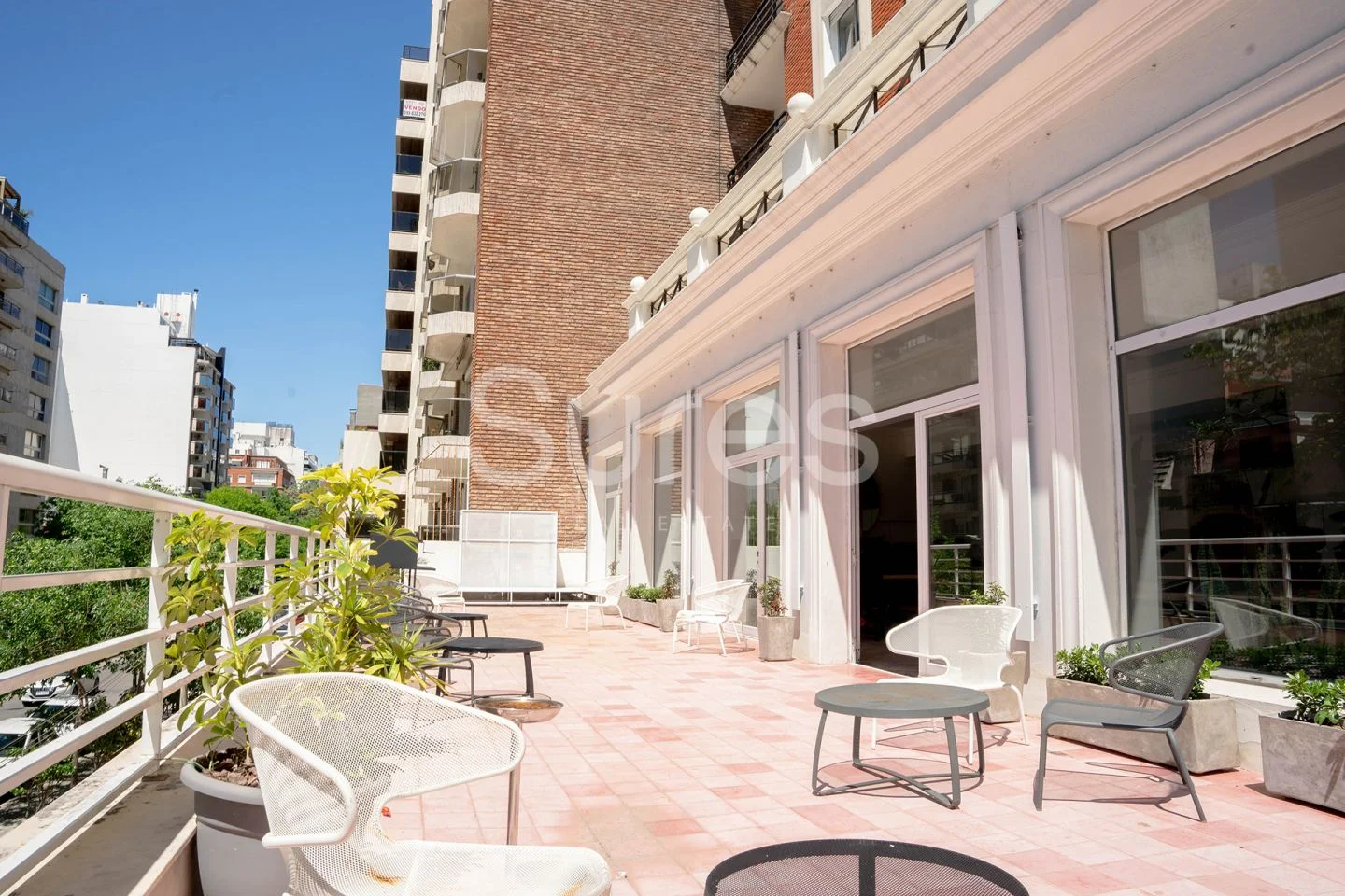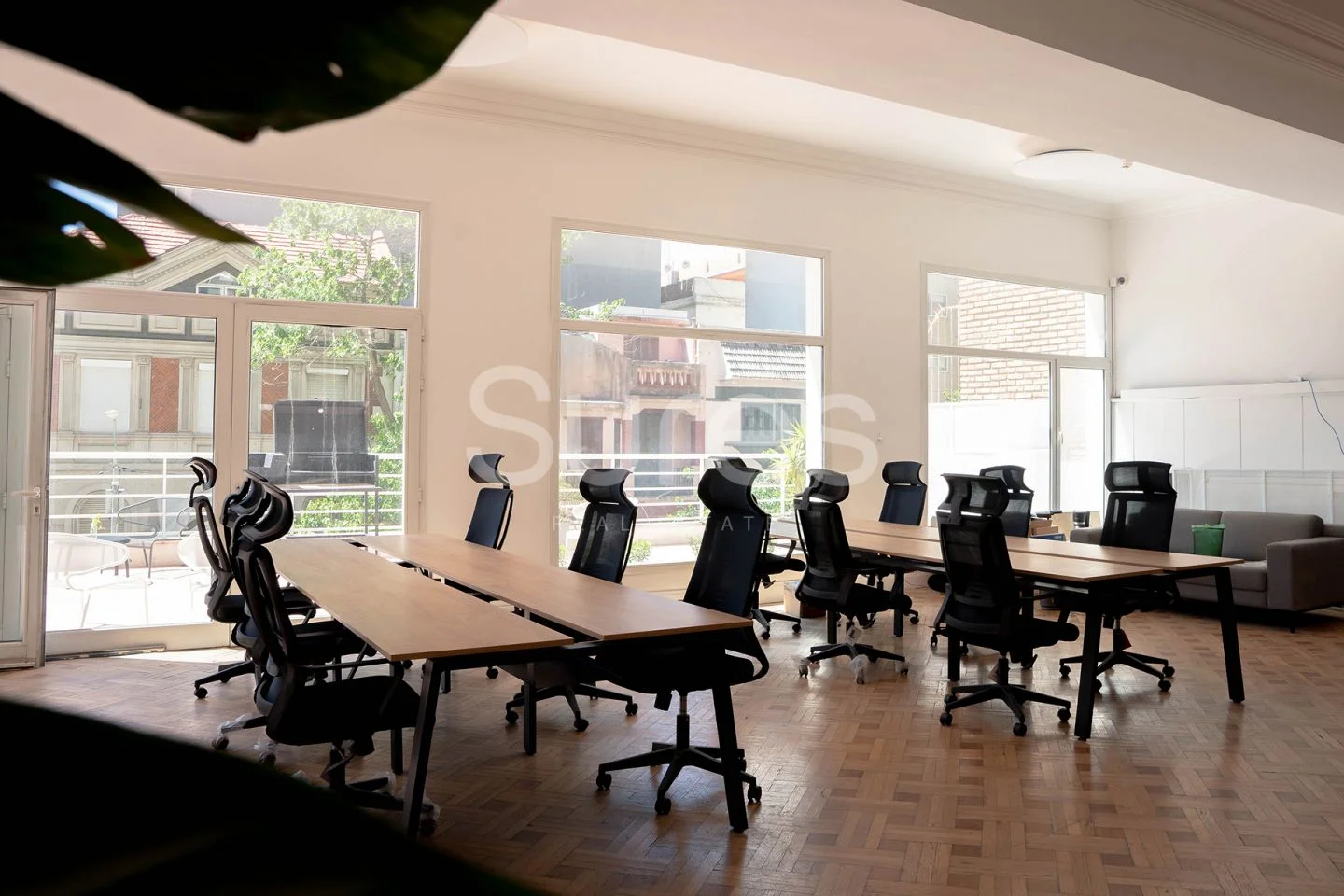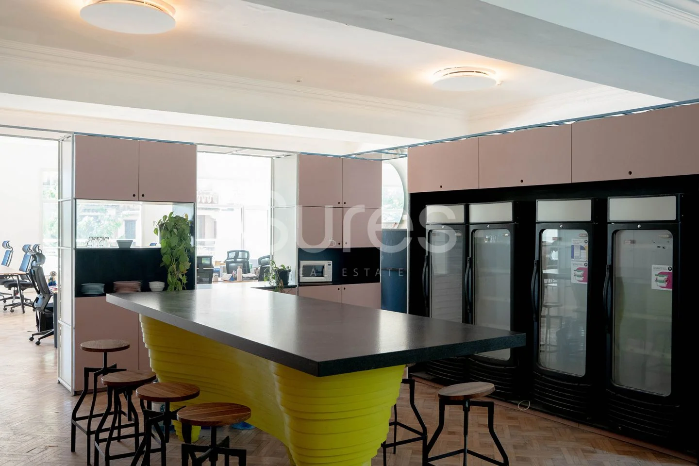 La oficina cuenta con amplias áreas iluminadas al frente con doble altura. Con una gran terraza exclusiva de 88 m². Incluye una zona de kitchenette y comedor integrados, separados mediante mobiliario funcional. Posee dos baterías de baños independientes. El estado general es excelente, con construcción tradicional y mejoras recientes que optimizan su funcionalidad y confort.