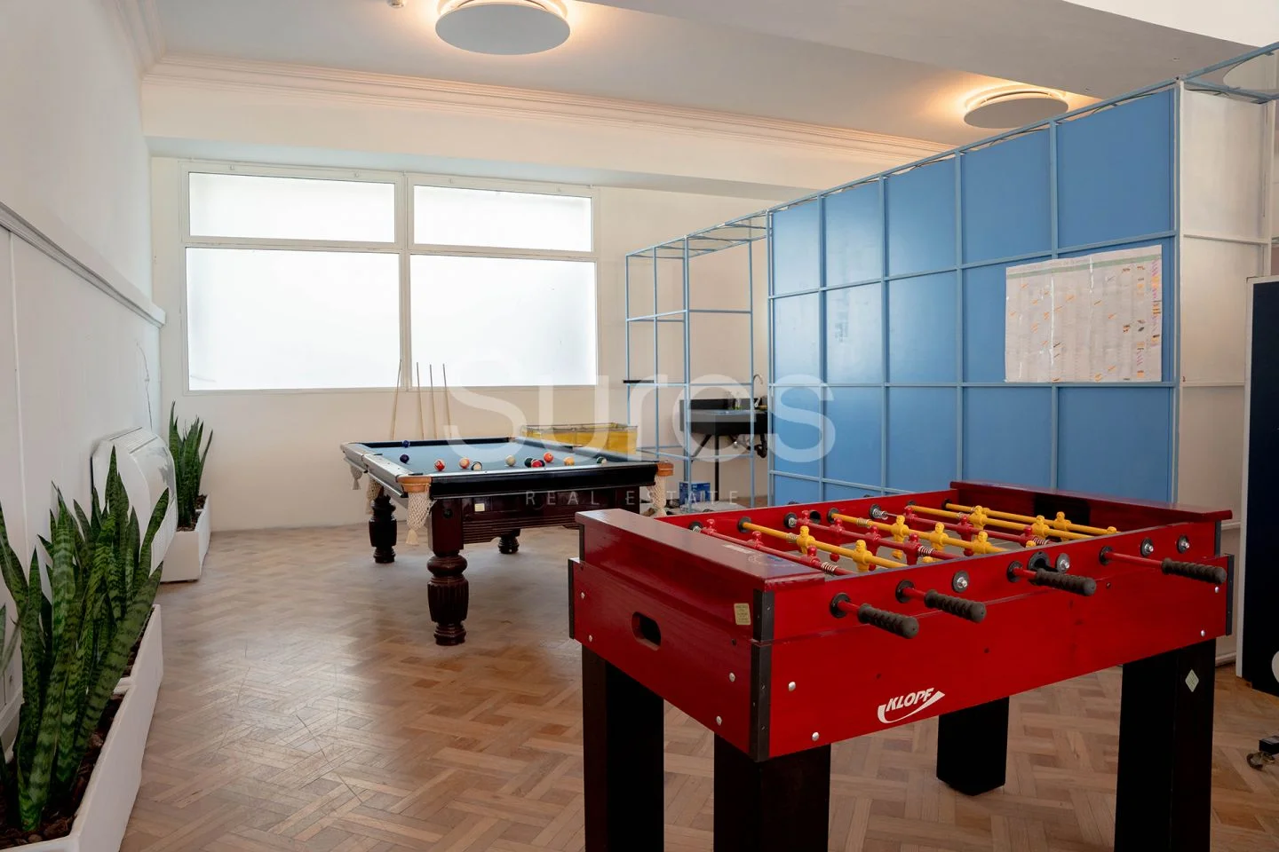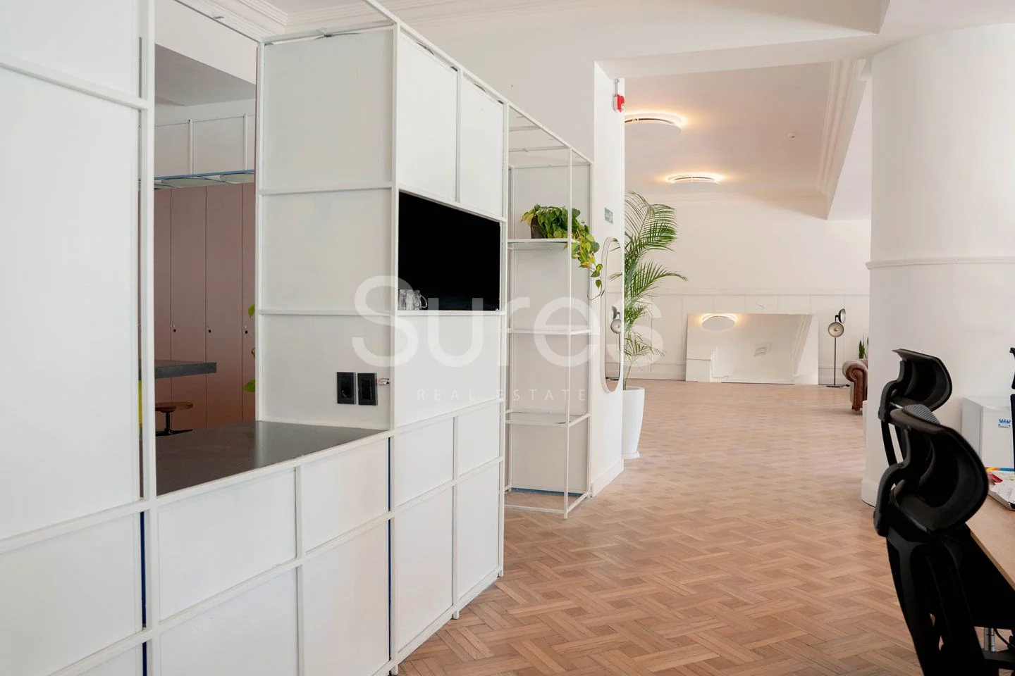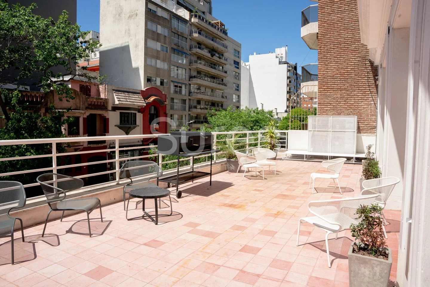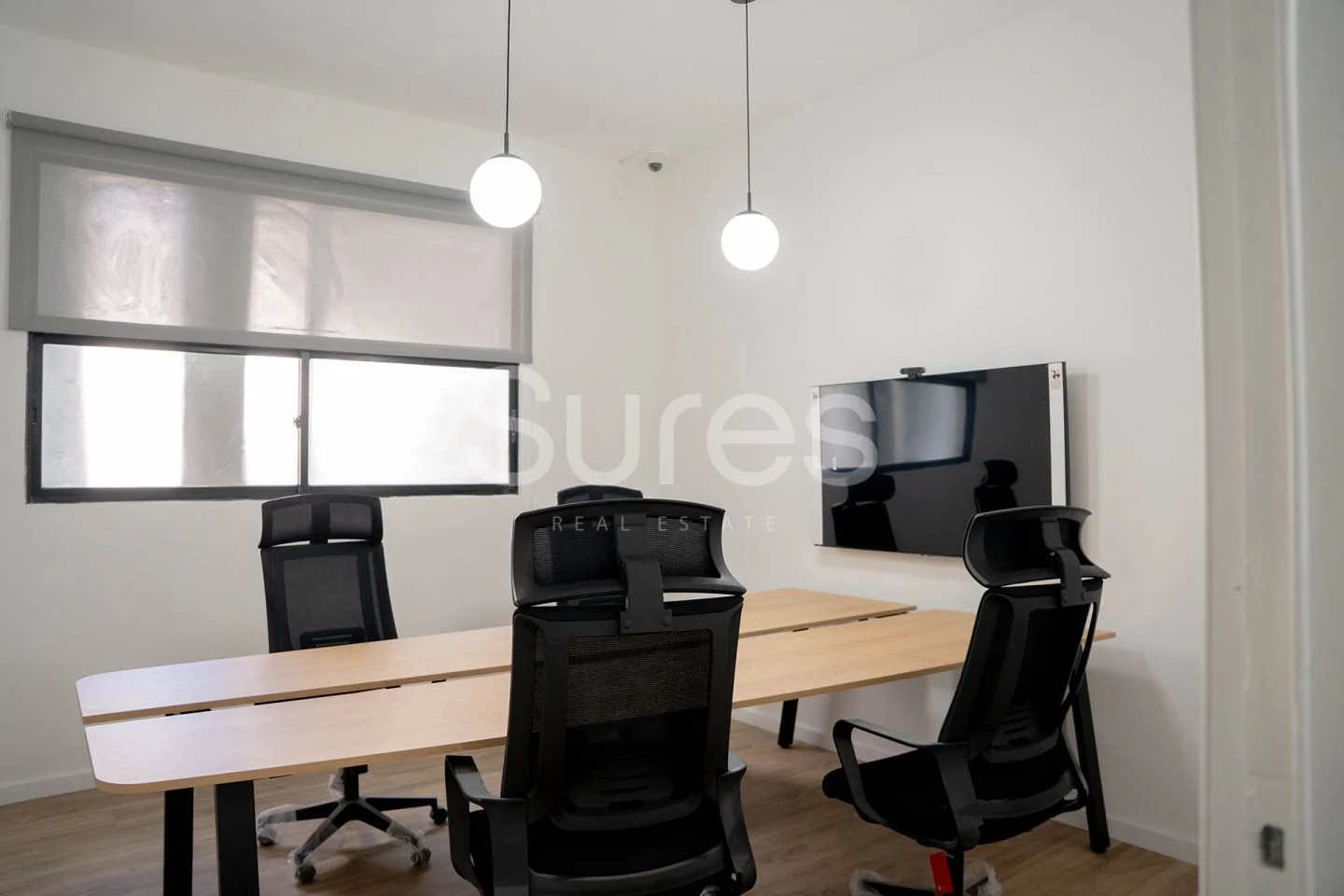 La oficina cuenta con amplias áreas iluminadas al frente con doble altura. Con una gran terraza exclusiva de 88 m². Incluye una zona de kitchenette y comedor integrados, separados mediante mobiliario funcional. Posee dos baterías de baños independientes. El estado general es excelente, con construcción tradicional y mejoras recientes que optimizan su funcionalidad y confort.
