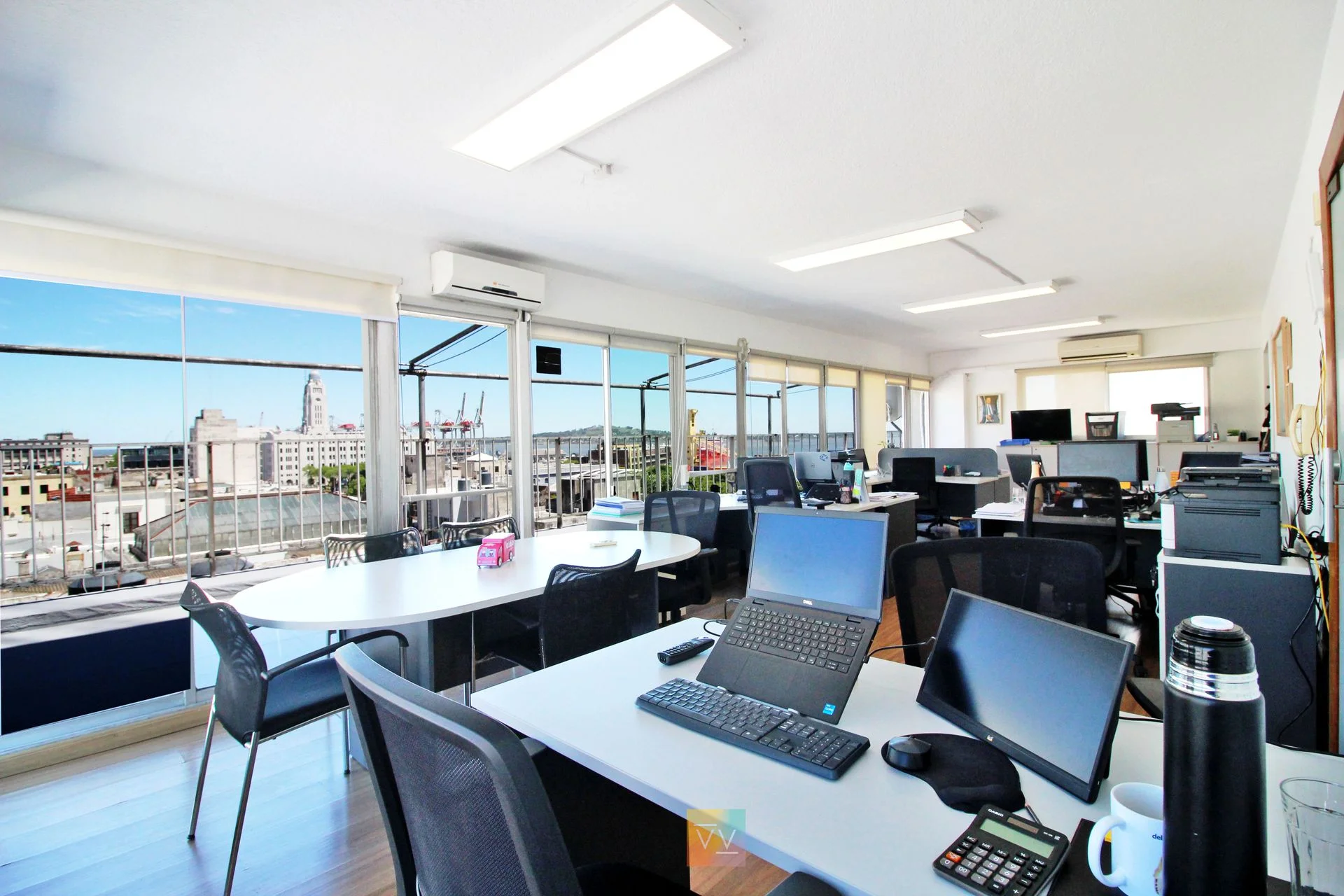La oficina cuenta con 104mt2 (48 mt2 interiores + 56 mt2 de terraza con parrillero). Se encuentra en el piso 7 con una vista super despejada hacia la bahía y el cerro. El edificio cuenta con una unidad por piso.