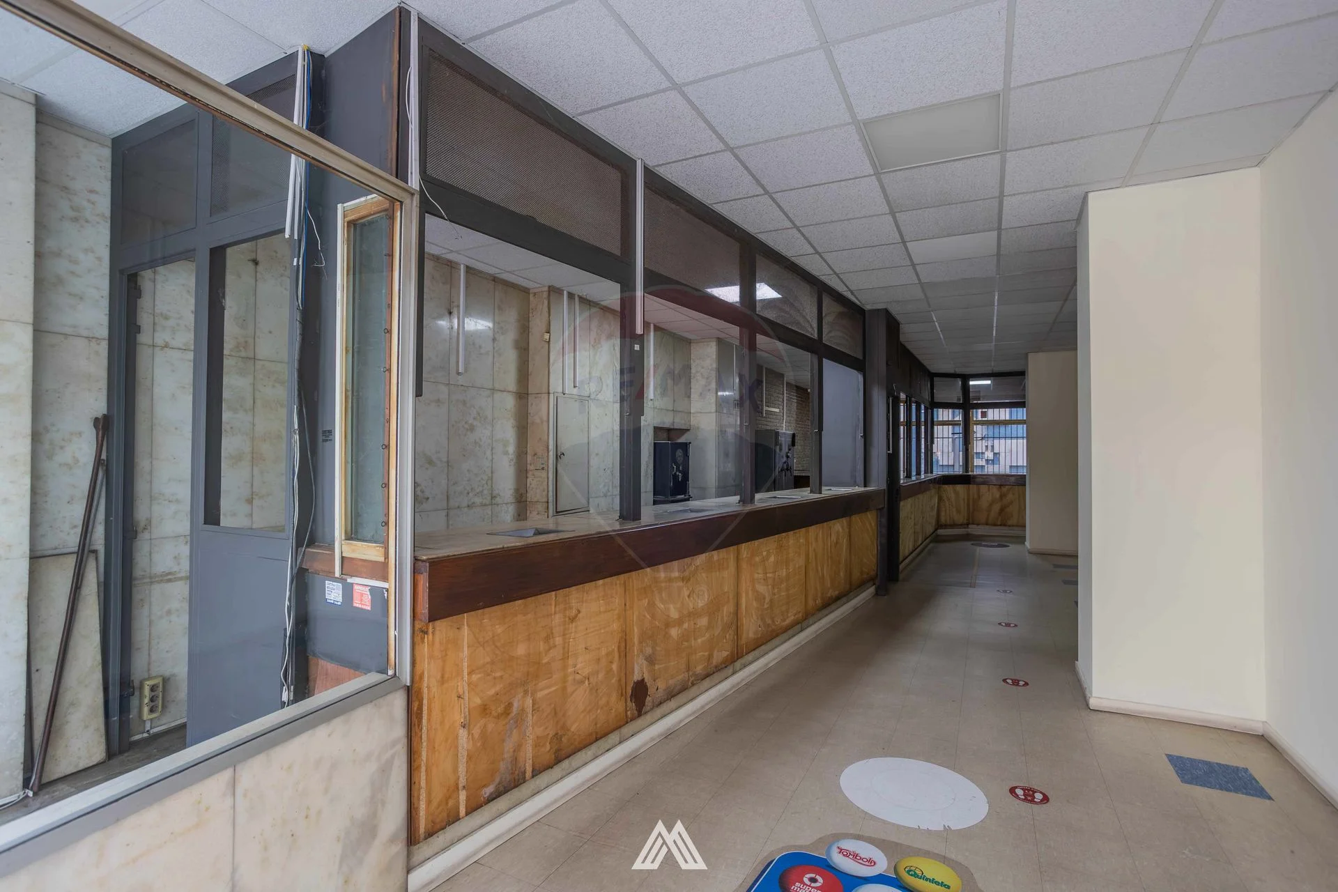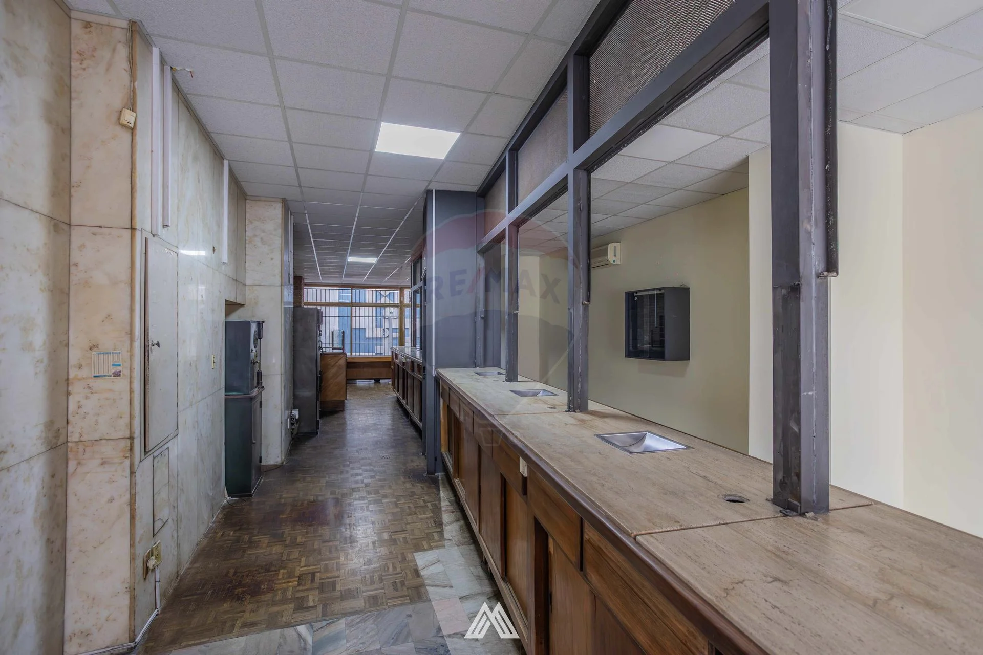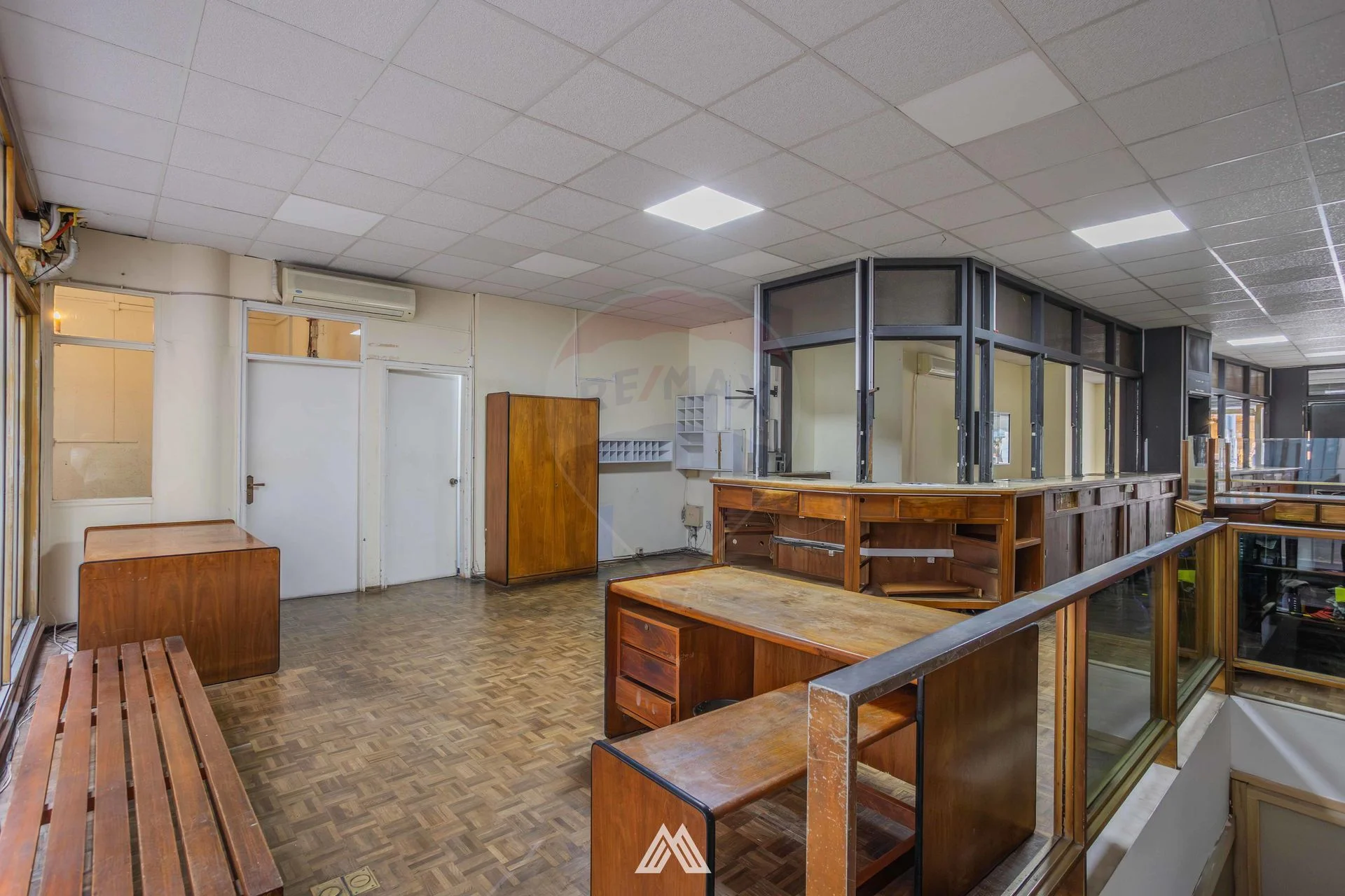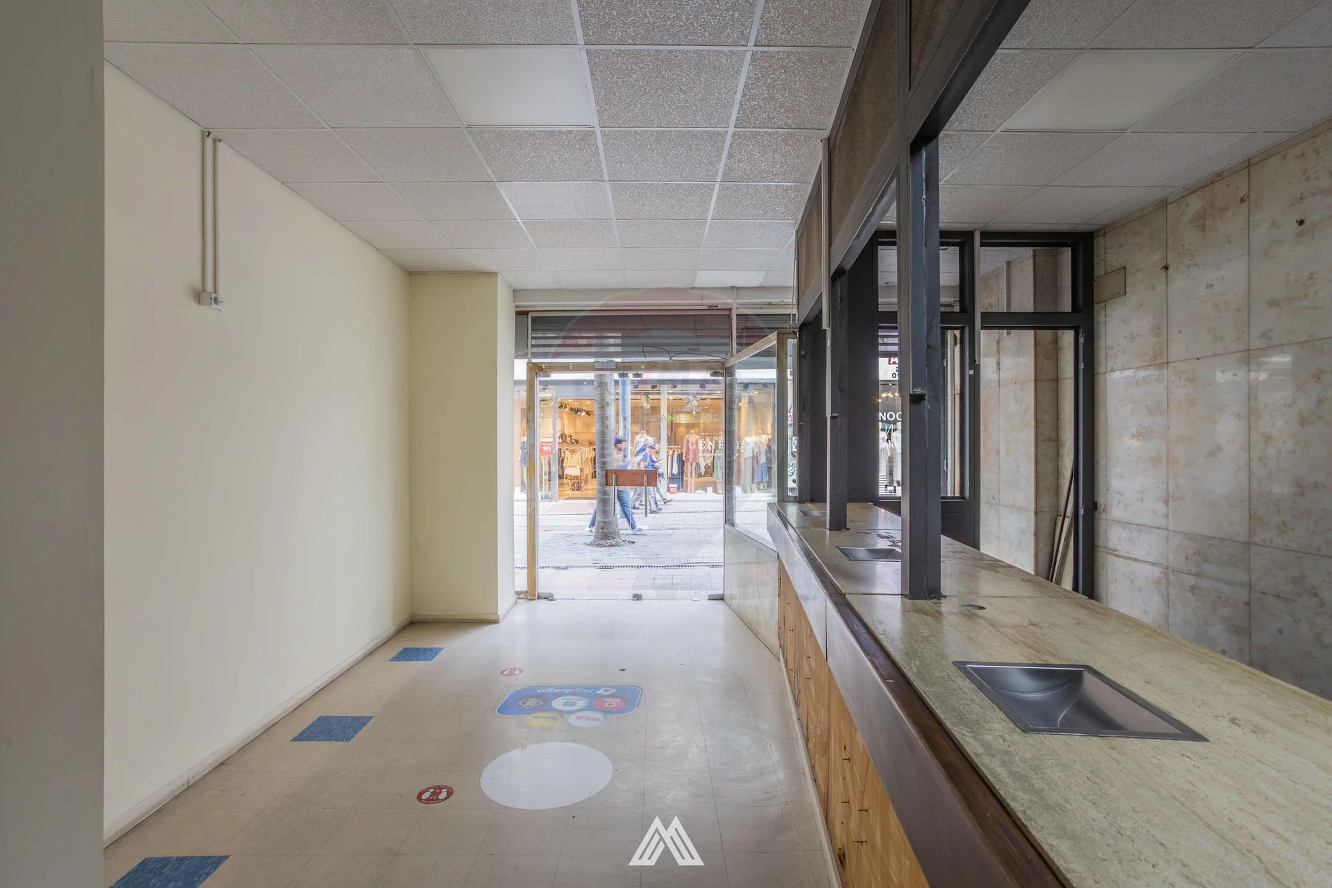 El local cuenta con vidriera hacia la peatonal, un muy amplio salón principal de 152m2 con pisos de parque, cielorraso, mostrador para atención al público y paredes de ladrillo, además incluye una oficina con baño privado, y 2 baños secundarios en muy buenas condiciones.
