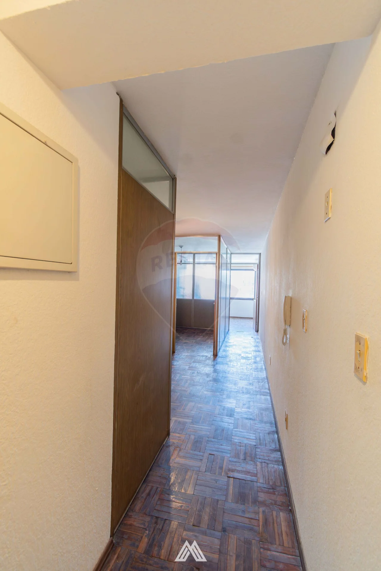 Está equipada con mamparas livianas de madera y vidrio, facilmente desmontables según las necesidades de cada profesional o empresa.