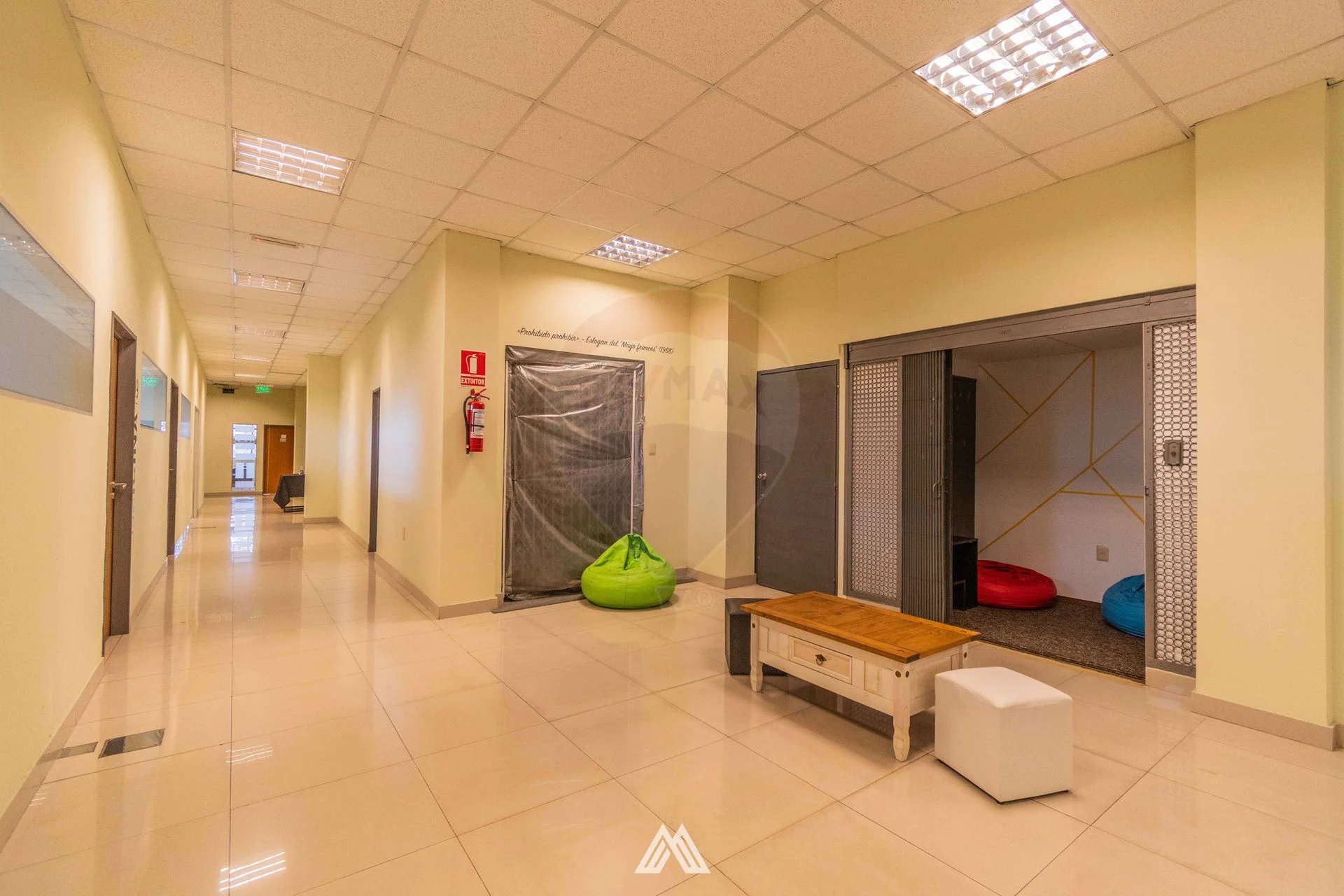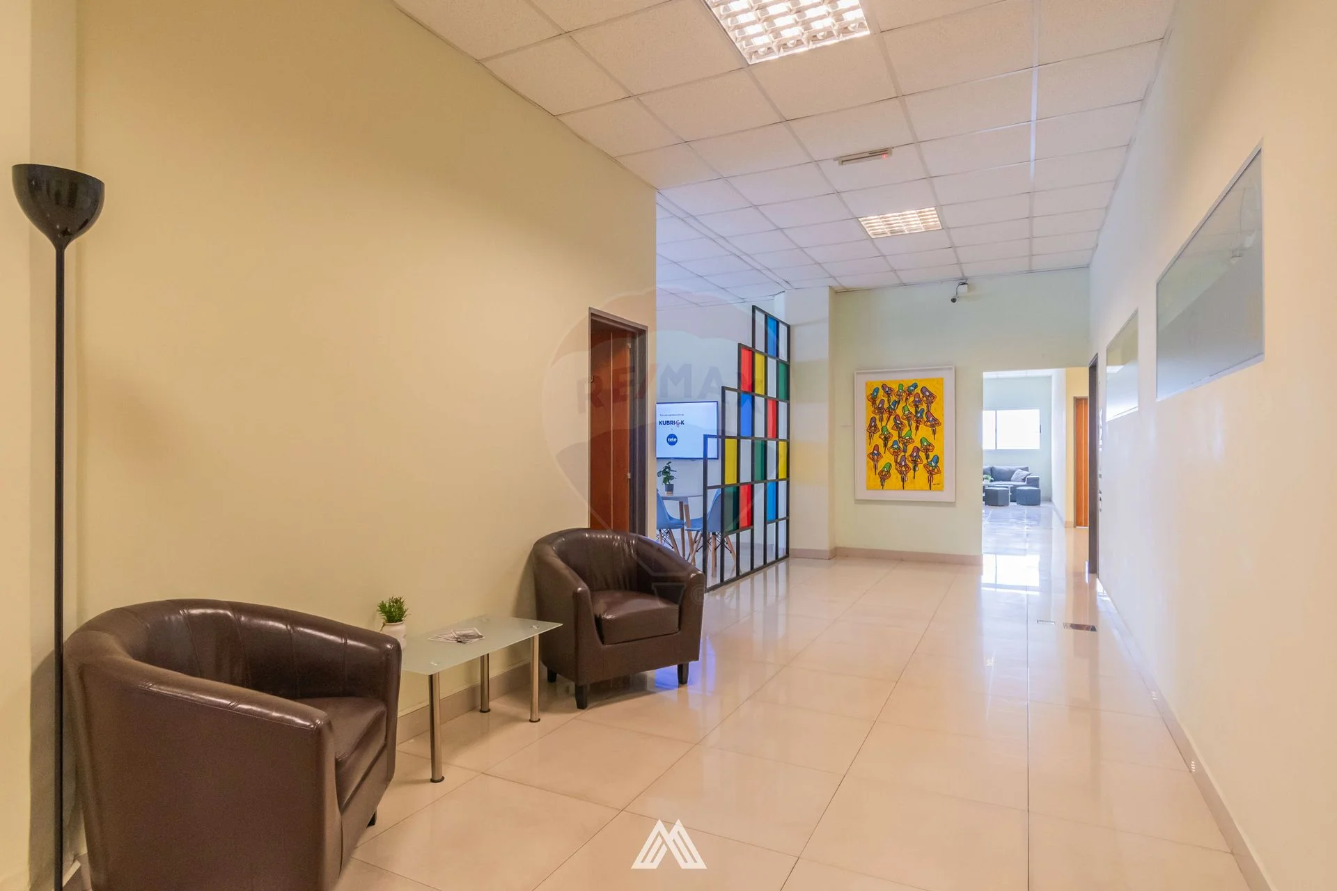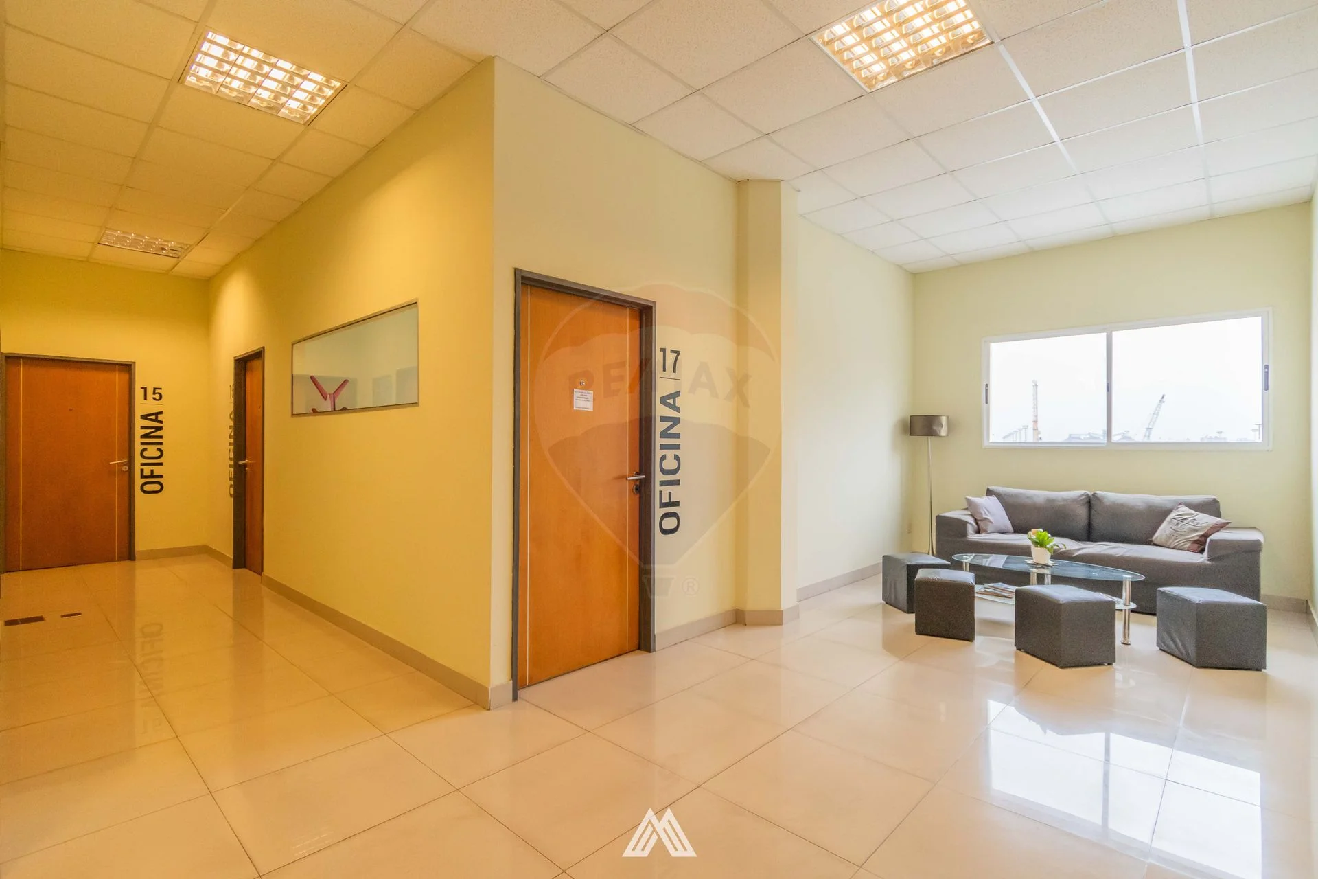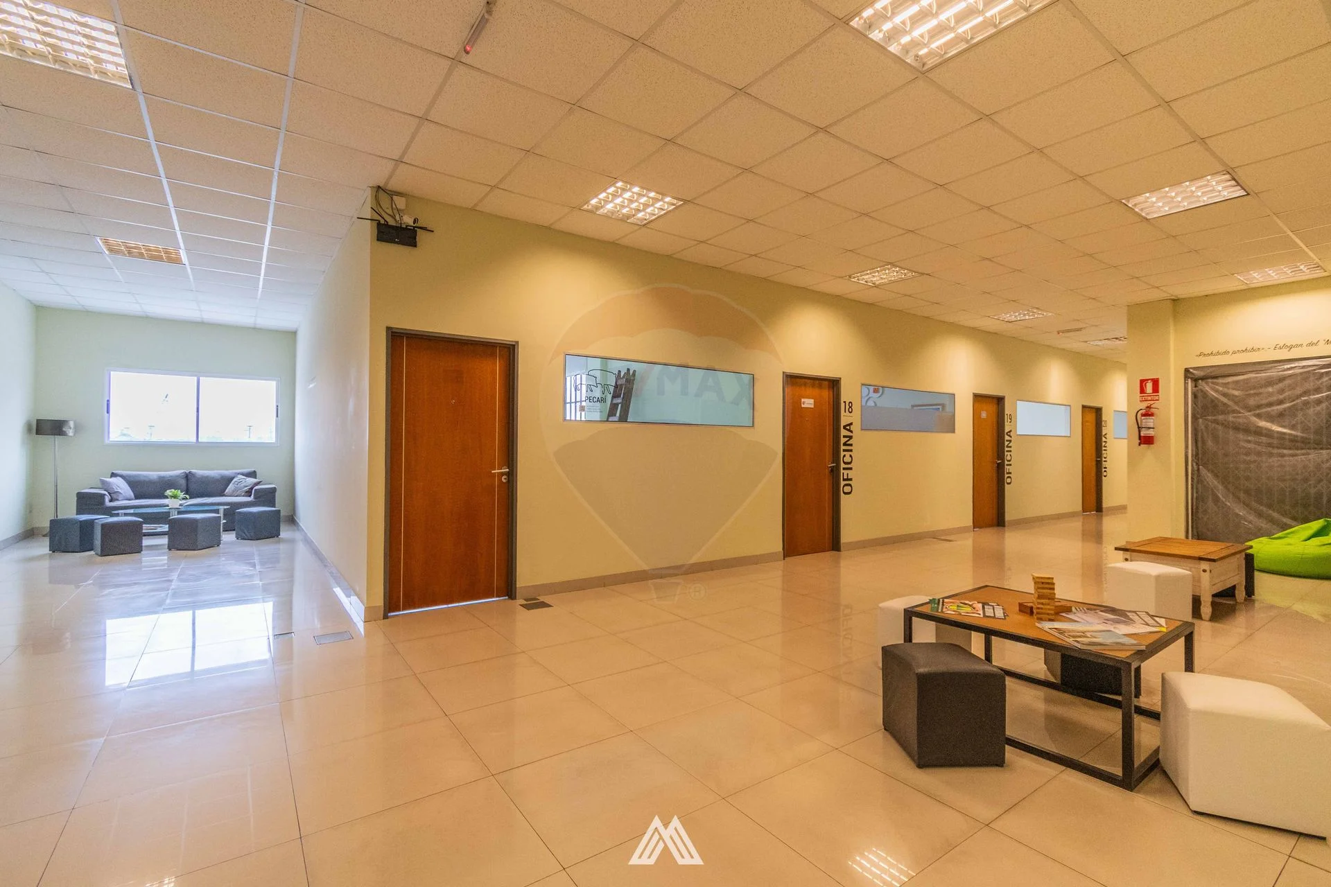 Cuenta con un área de 915m2 totales, distribuidos en hall de entrada y recepción, 15 oficinas privadas, 2 salas de reuniones, sala de conferencia, sala multiuso, área de co-work, comedor con cocina, sala de lectura, varios espacios tipo living y 6 baños, uno para las salas de reuniones, uno en la sala de conferencias y 4 baños generales compartimentados.
