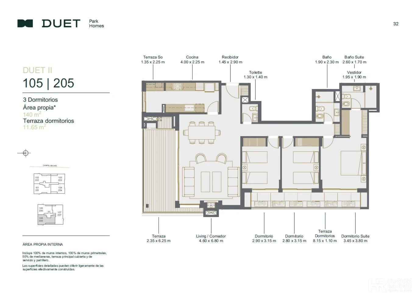 Duet Park Homes. Hall de entrada con recibidor. Living-comedor apaisado con estufa a leña. Terraza con parrillero. Cocina con terraza lavadero. Baño social. 3 dormitorios y 2 baños completos, principal en suite con vestidor. Calefacción por losa radiante hidráulica; previsión de AA en todos los ambientes. Piscina con solárium, gimnasio, grandes áreas verdes. Cowork y Barbacoa. Seguridad 24hs. Gastos de ocupación: 5% Garaje y box opcional. En caso de alquiler, se incluye garaje, anafe, horno y campana y AA en todos los ambientes.