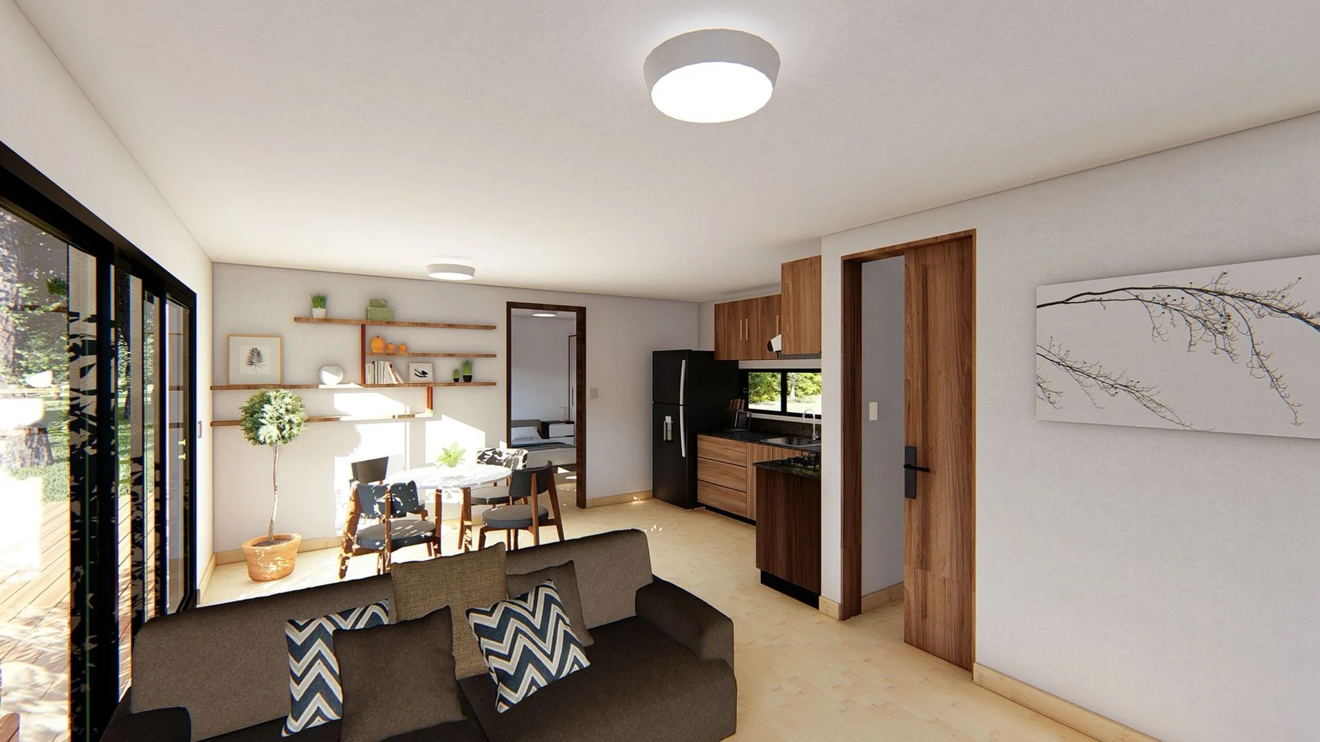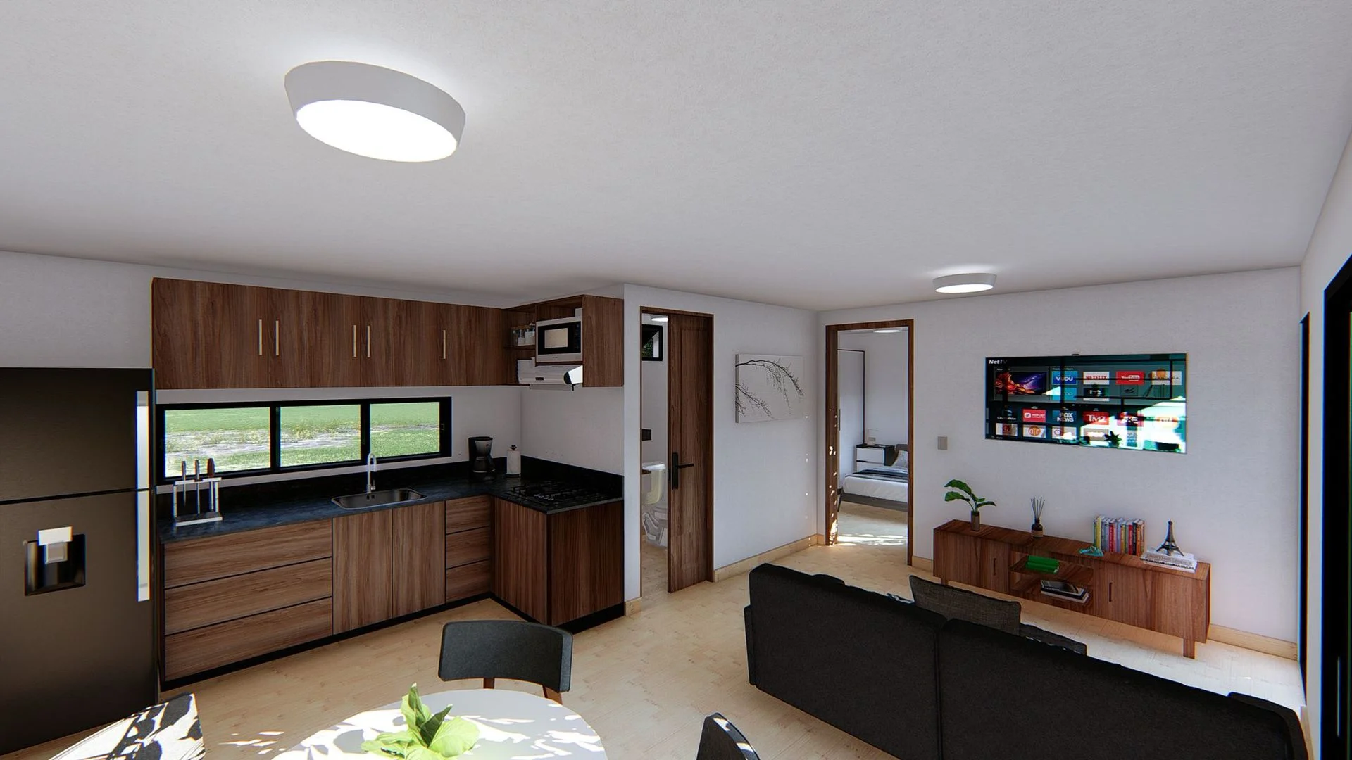 Luminaria LED interior en living comedor, cocina, baño y dormitorios.