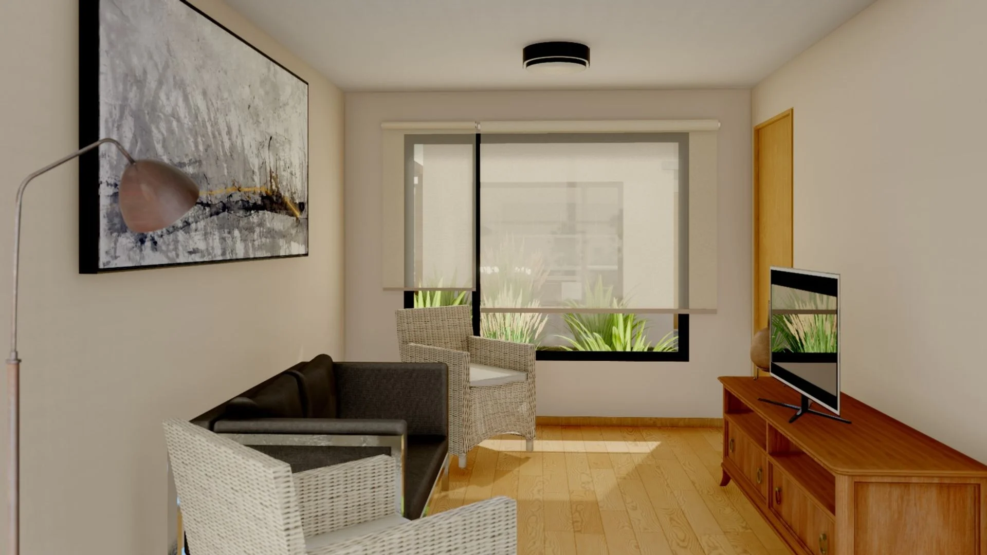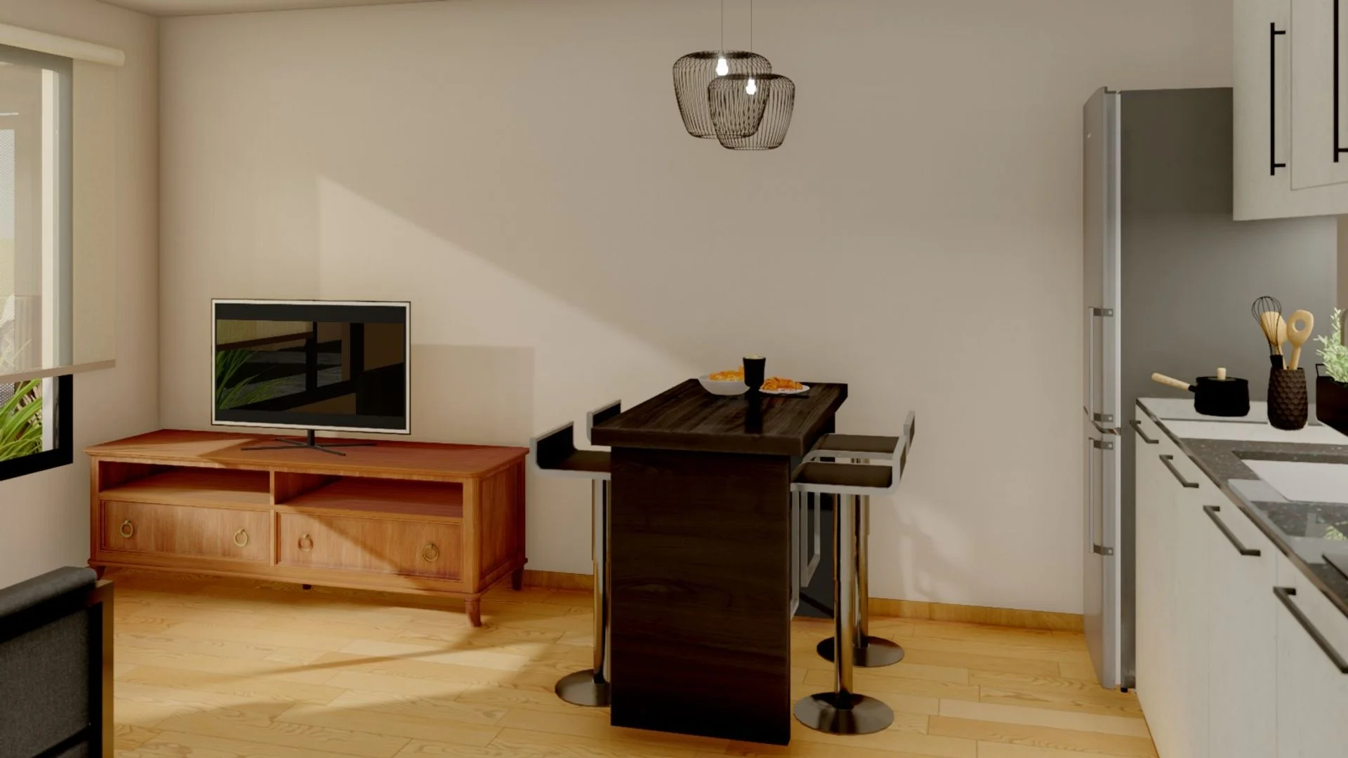 1 dormitorio el cual posee 10,5 m², 1 living comedor cocina 19,32 m², 1 baño 3,25 m² y un patio de 12,6 m² que cuenta con parrillero; cada apartamento tiene un total de 44,75 m².